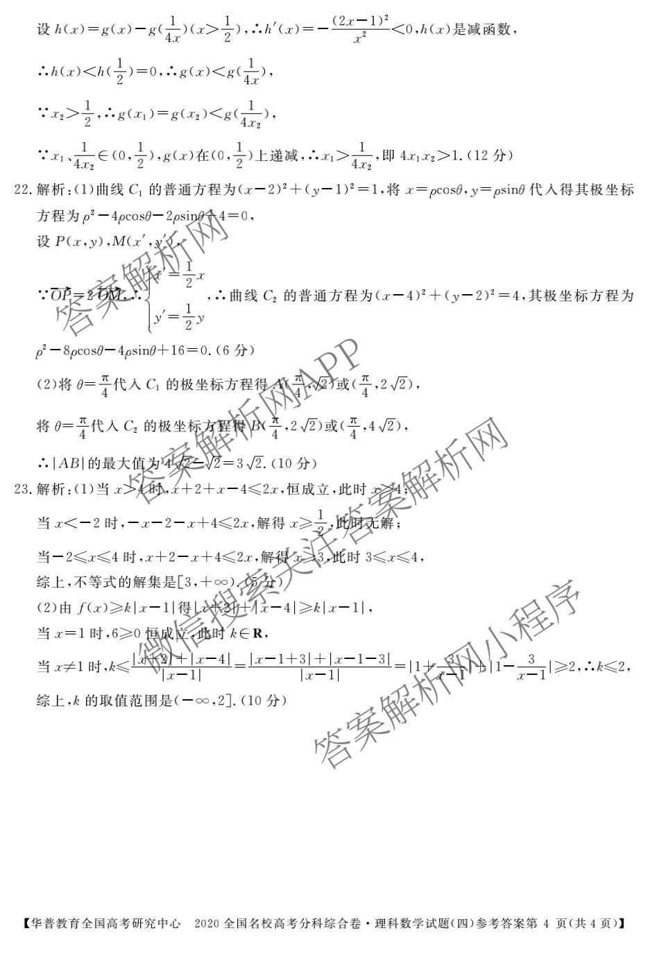 - 华普教育2020全国名校高考分科综合卷(四)理科数学答案