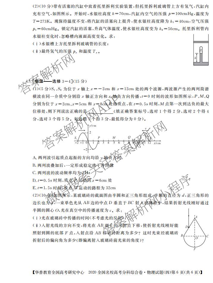 华普教育·2020全国名校高考分科综合卷(四)物理试题,目前分科卷答案网已经汇总了华普教育·2020全国名校高考分科综合卷(四)物理试题的各科答案和试卷,获取更多华普教育答案解析,请在关注本站。