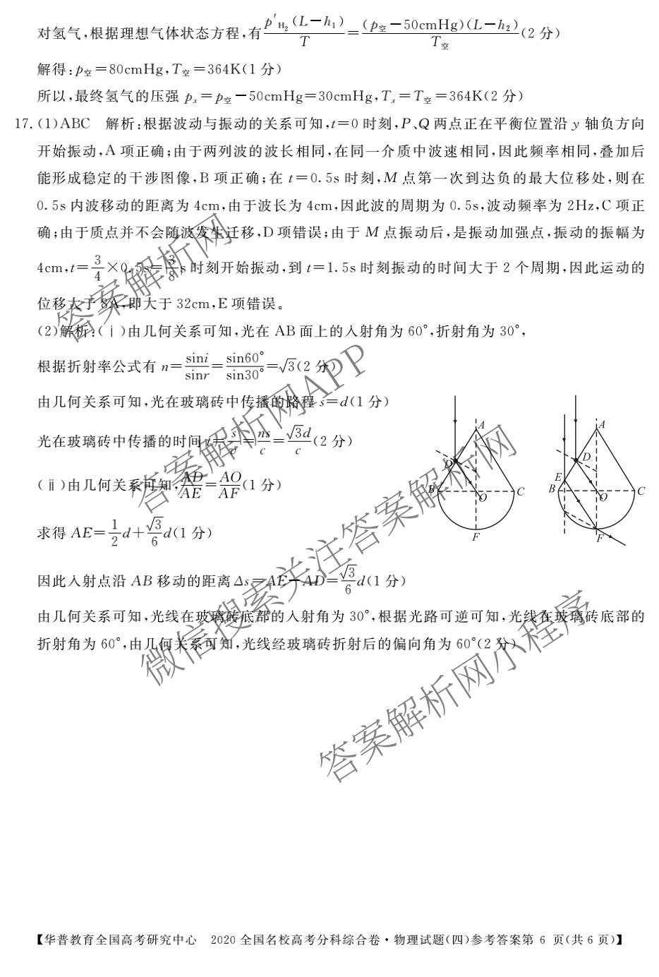 华普教育2020全国名校高考分科综合卷(四)物理答案