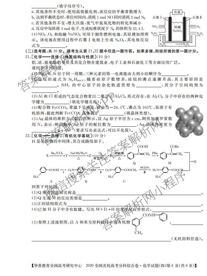 华普教育·2020全国名校高考分科综合卷(四)化学试题,目前分科卷答案网已经汇总了华普教育·2020全国名校高考分科综合卷(四)化学试题的各科答案和试卷,获取更多华普教育答案解析,请在关注本站。