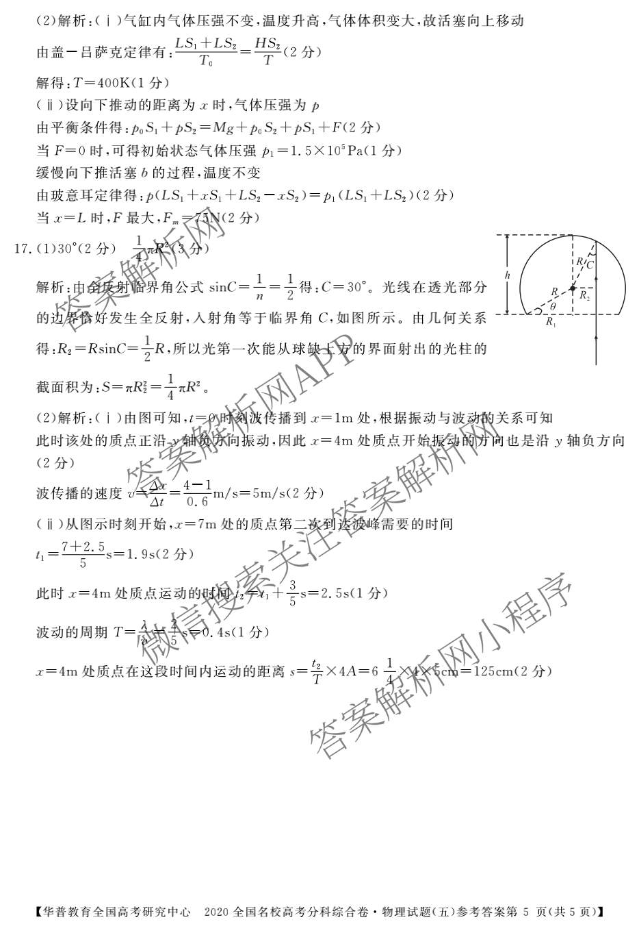 华普教育2020全国名校高考分科综合卷(五)物理答案
