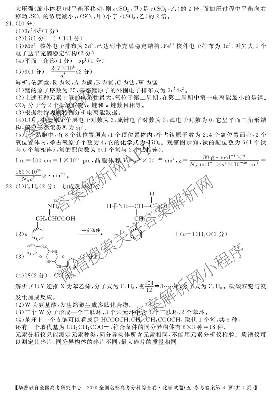 华普教育·2020全国名校高考分科综合卷(五)化学答案,目前分科卷答案网已经汇总了华普教育·2020全国名校高考分科综合卷(五)化学答案的各科答案和试卷,获取更多华普教育答案解析,请在关注本站。