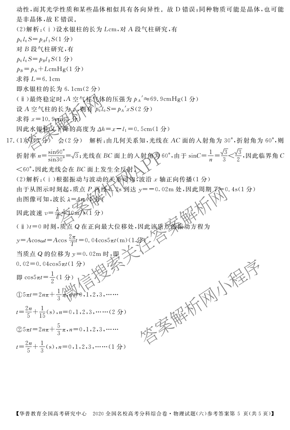 华普教育·2020全国名校高考分科综合卷(六)物理答案,目前分科卷答案网已经汇总了华普教育·2020全国名校高考分科综合卷(六)物理答案的各科答案和试卷,获取更多华普教育答案解析,请在关注本站。
