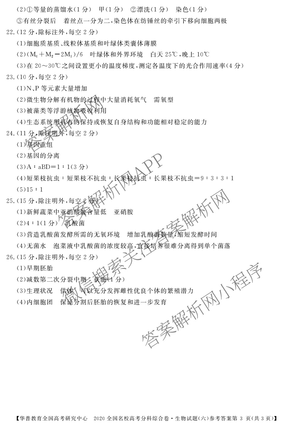 华普教育·2020全国名校高考分科综合卷(六)生物答案,目前分科卷答案网已经汇总了华普教育·2020全国名校高考分科综合卷(六)生物答案的各科答案和试卷,获取更多华普教育答案解析,请在关注本站。