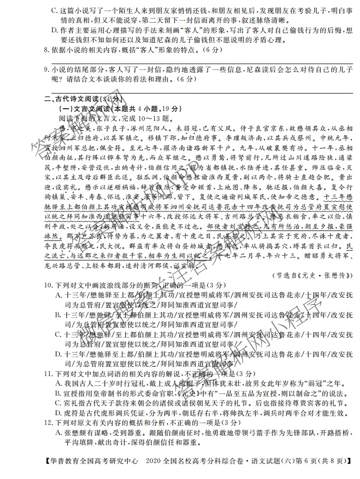 华普教育·2020全国名校高考分科综合卷(六)语文试题,目前分科卷答案网已经汇总了华普教育·2020全国名校高考分科综合卷(六)语文试题的各科答案和试卷,获取更多华普教育答案解析,请在关注本站。