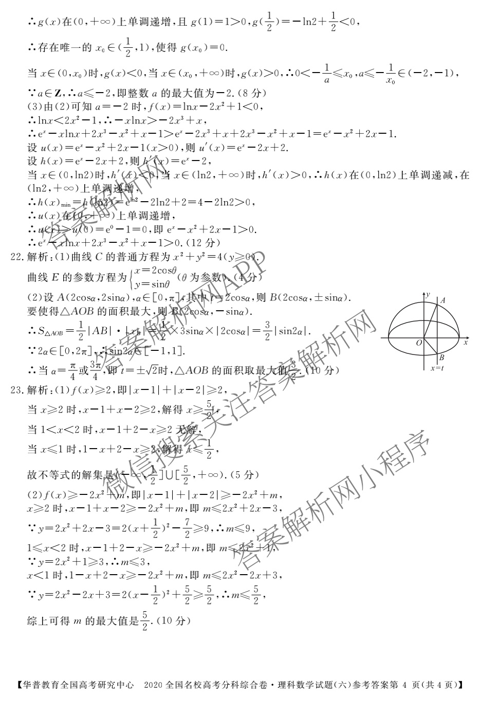- 华普教育2020全国名校高考分科综合卷(六)理科数学答案