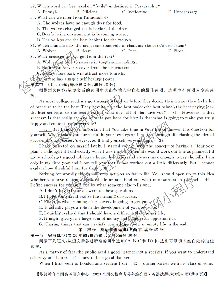 华普教育2020全国名校高考分科综合卷(六)英语试题
