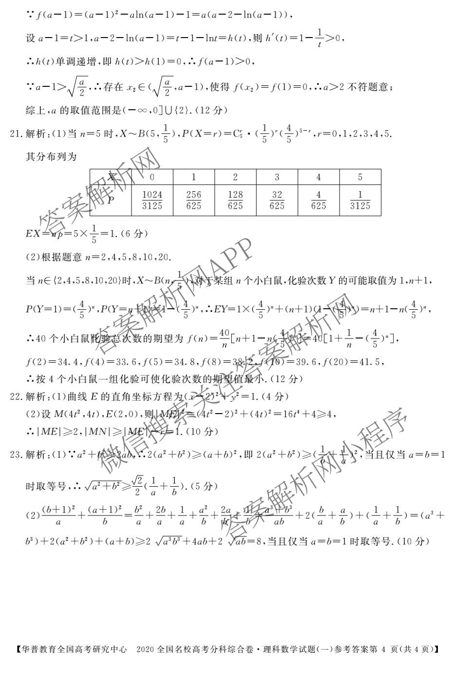 - 华普教育2020全国名校高考分科综合卷(一)理科数学答案