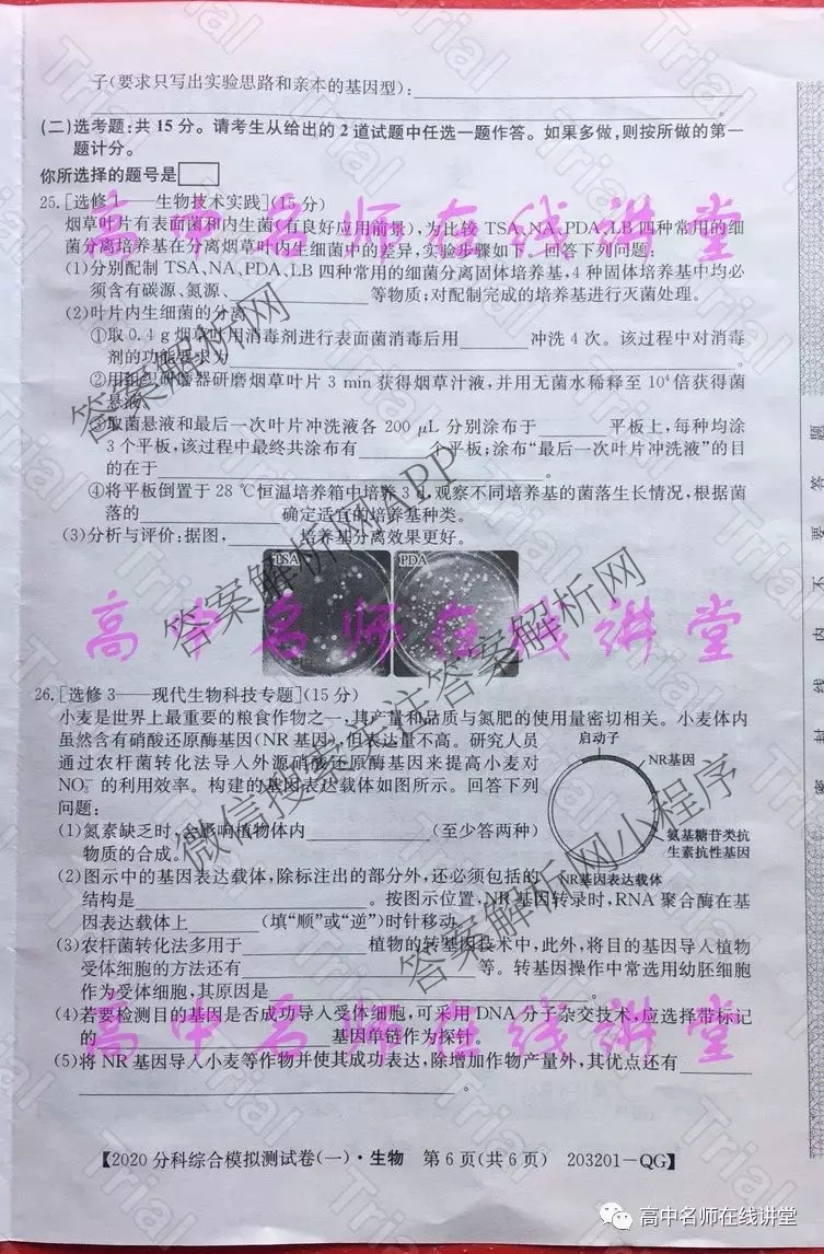 2020届全国高考分科综合模拟测试卷(一)203201生物试题,目前分科卷答案网已经汇总了2020届全国高考分科综合模拟测试卷(一)203201生物试题的各科答案和试卷,获取更多全国高考分科综合模拟测试卷答案解析,请在关注本站。