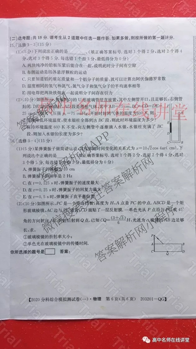 2020届全国高考分科综合模拟测试卷(一)203201物理试题,目前分科卷答案网已经汇总了2020届全国高考分科综合模拟测试卷(一)203201物理试题的各科答案和试卷,获取更多全国高考分科综合模拟测试卷答案解析,请在关注本站。