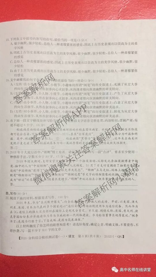 2020届全国高考分科综合模拟测试卷(一)203201语文试题,目前分科卷答案网已经汇总了2020届全国高考分科综合模拟测试卷(一)203201语文试题的各科答案和试卷,获取更多全国高考分科综合模拟测试卷答案解析,请在关注本站。
