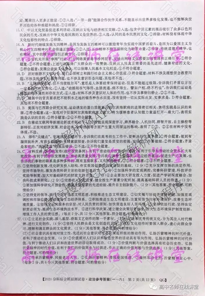 2020届全国高考分科综合模拟测试卷(一)203201政治答案,目前分科卷答案网已经汇总了2020届全国高考分科综合模拟测试卷(一)203201政治答案的各科答案和试卷,获取更多全国高考分科综合模拟测试卷答案解析,请在关注本站。