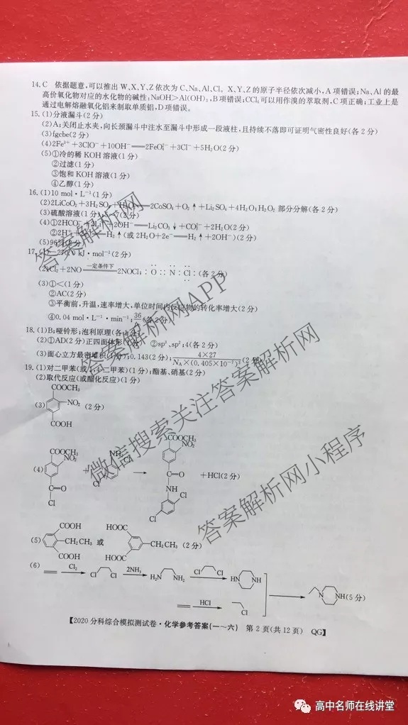 2020届全国高考分科综合模拟测试卷(一)203201化学答案,目前分科卷答案网已经汇总了2020届全国高考分科综合模拟测试卷(一)203201化学答案的各科答案和试卷,获取更多全国高考分科综合模拟测试卷答案解析,请在关注本站。