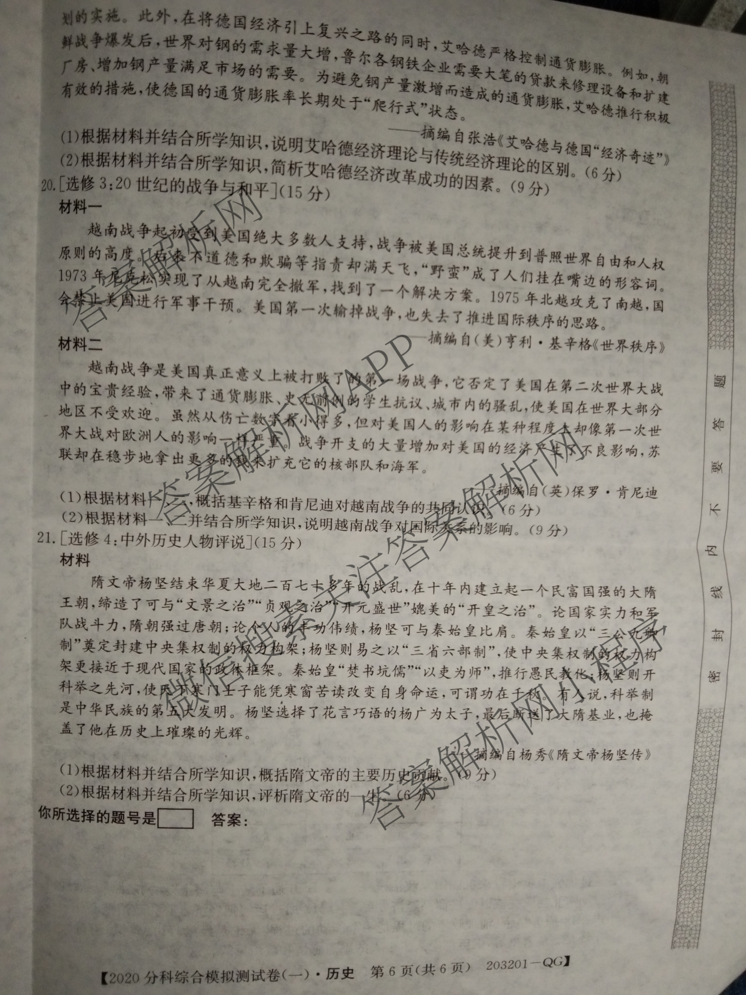 2020届全国高考分科综合模拟测试卷(一)203201历史试题,目前分科卷答案网已经汇总了2020届全国高考分科综合模拟测试卷(一)203201历史试题的各科答案和试卷,获取更多全国高考分科综合模拟测试卷答案解析,请在关注本站。