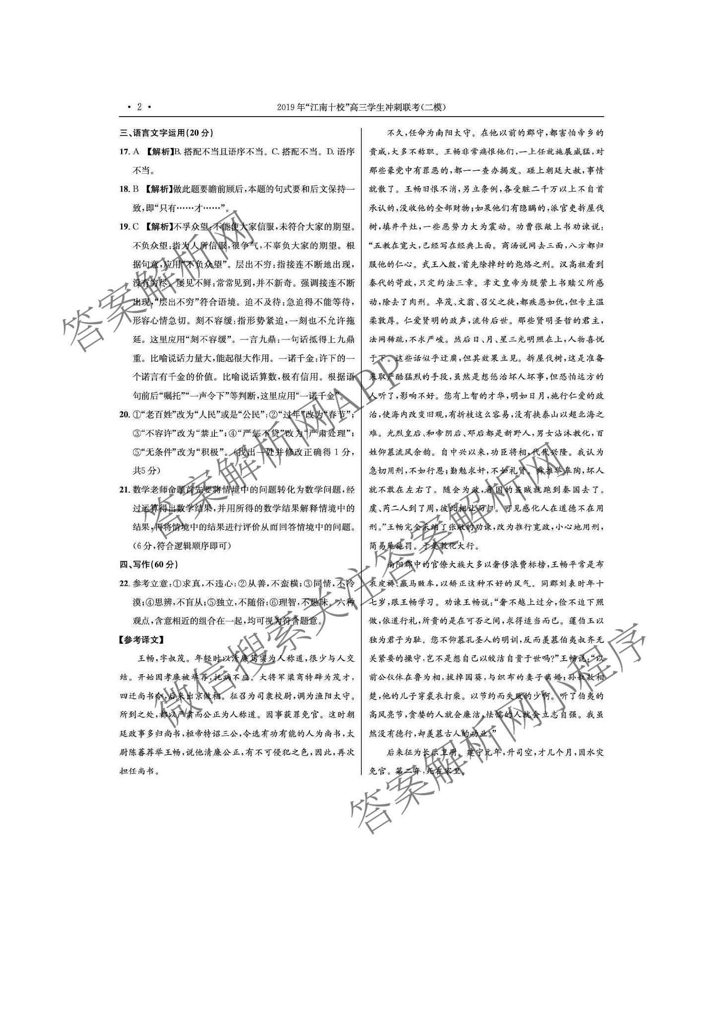 安徽省江南十校2019届高三冲刺联考(二模)语文试题 扫描版含答案,目前分科卷答案网已经汇总了安徽省江南十校2019届高三冲刺联考(二模)语文试题 扫描版含答案的各科答案和试卷,获取更多江南十校答案解析,请在关注本站。