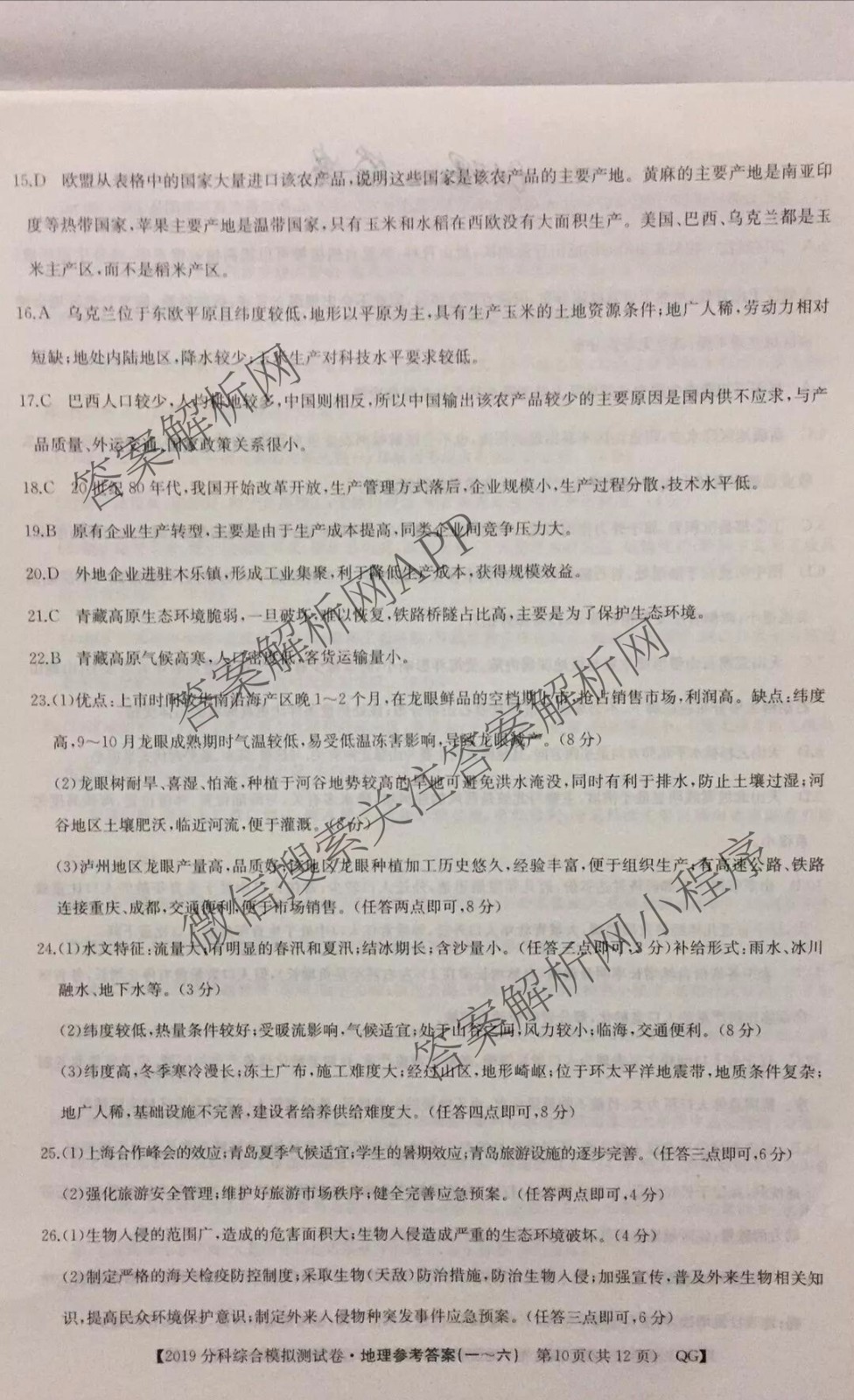 2019届全国高考分科综合模拟测试卷地理(五)5答案,目前分科卷答案网已经汇总了2019届全国高考分科综合模拟测试卷地理(五)5答案的各科答案和试卷,获取更多全国高考分科综合模拟测试卷答案解析,请在关注本站。