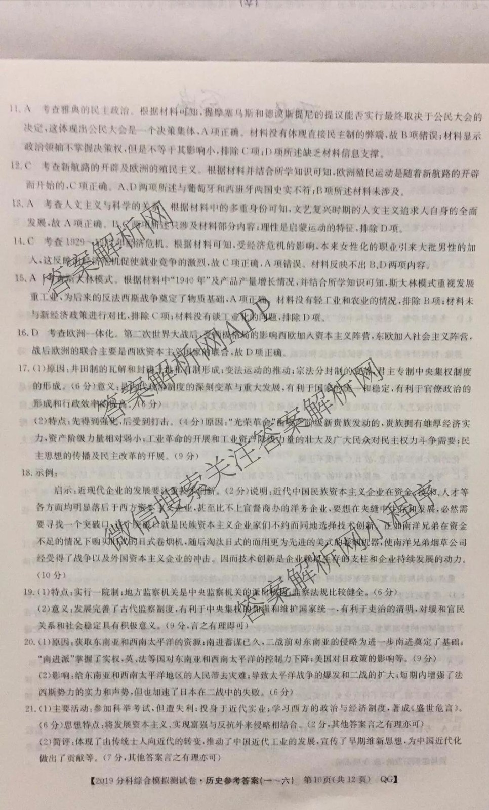 2019届全国高考分科综合模拟测试卷历史(五)5答案,目前分科卷答案网已经汇总了2019届全国高考分科综合模拟测试卷历史(五)5答案的各科答案和试卷,获取更多全国高考分科综合模拟测试卷答案解析,请在关注本站。