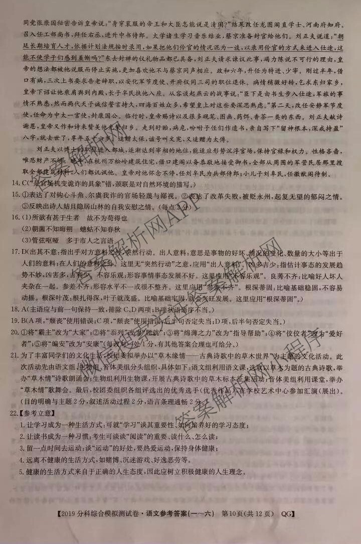 2019全国高考分科综合模拟测试卷语文(五)5答案,目前分科卷答案网已经汇总了2019全国高考分科综合模拟测试卷语文(五)5答案的各科答案和试卷,获取更多全国高考分科综合模拟测试卷答案解析,请在关注本站。