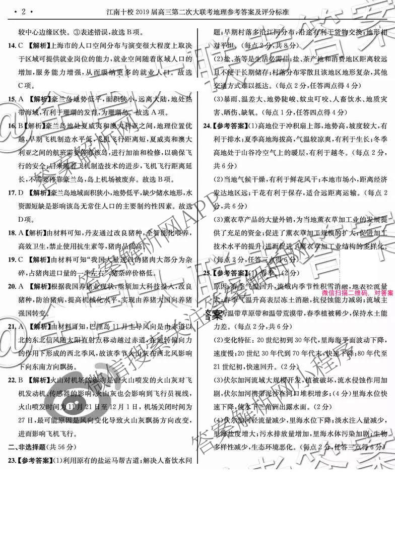 江南十校2019届高三第二次大联考地理答案,目前分科卷答案网已经汇总了江南十校2019届高三第二次大联考地理答案的各科答案和试卷,获取更多江南十校答案解析,请在关注本站。