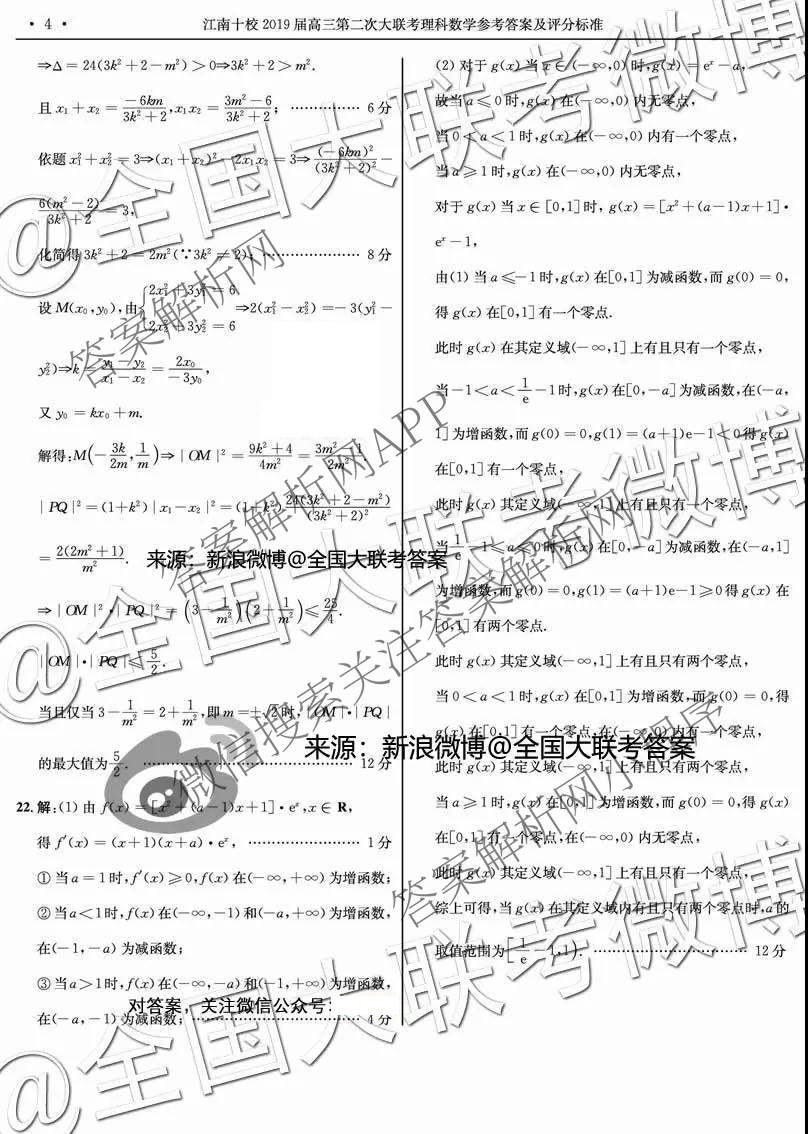 江南十校2019届高三第二次大联考理科数学答案,目前分科卷答案网已经汇总了江南十校2019届高三第二次大联考理科数学答案的各科答案和试卷,获取更多江南十校答案解析,请在关注本站。