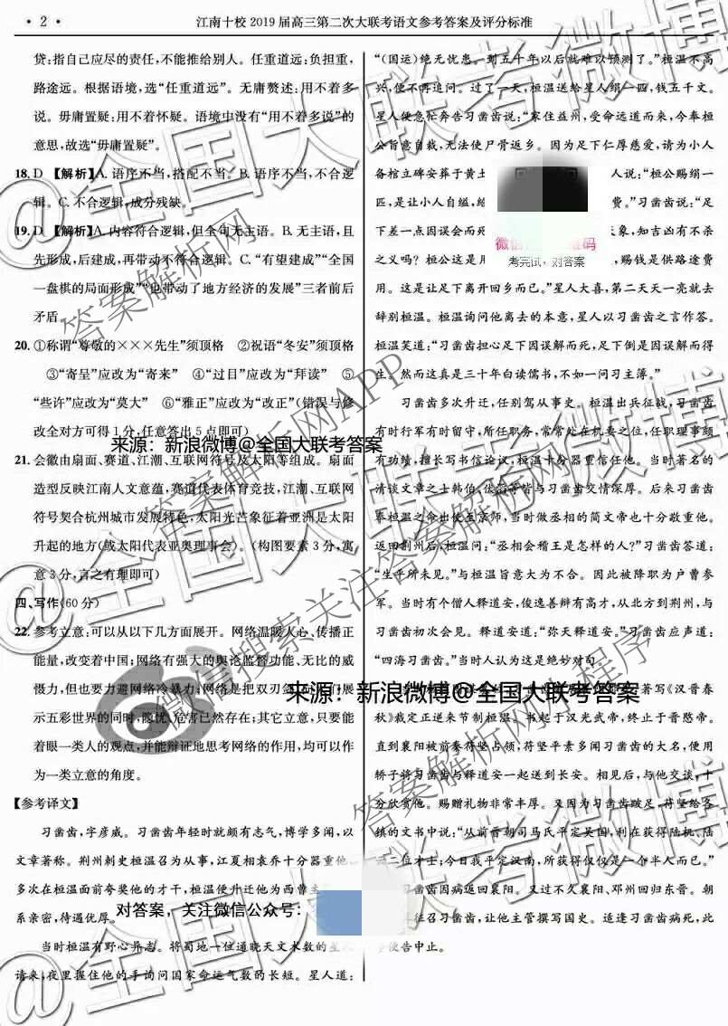 江南十校2019届高三第二次大联考语文答案,目前分科卷答案网已经汇总了江南十校2019届高三第二次大联考语文答案的各科答案和试卷,获取更多江南十校答案解析,请在关注本站。