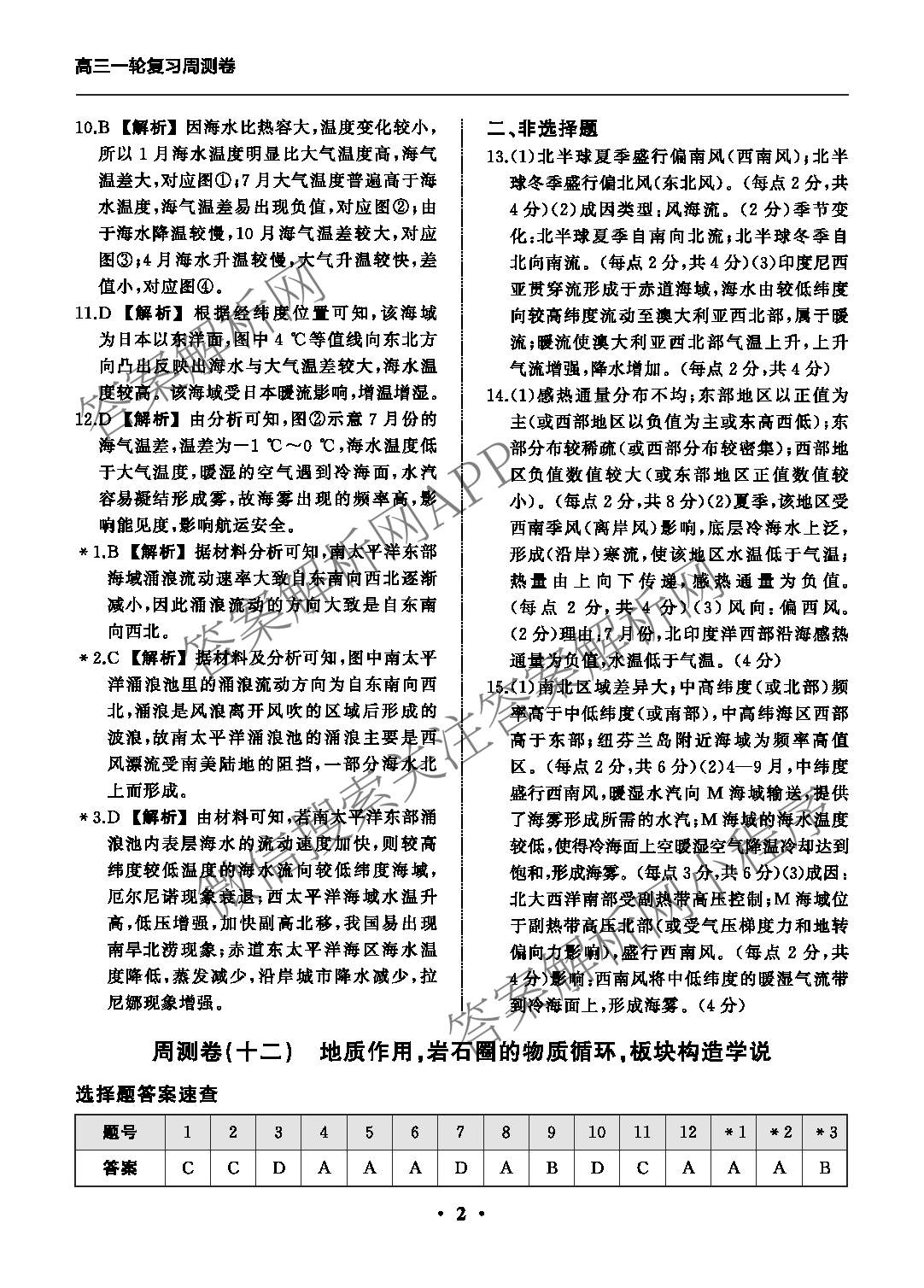 - 2024-2025(高三)衡中同卷学年度一轮复习周测卷 地理(十一)11答案
