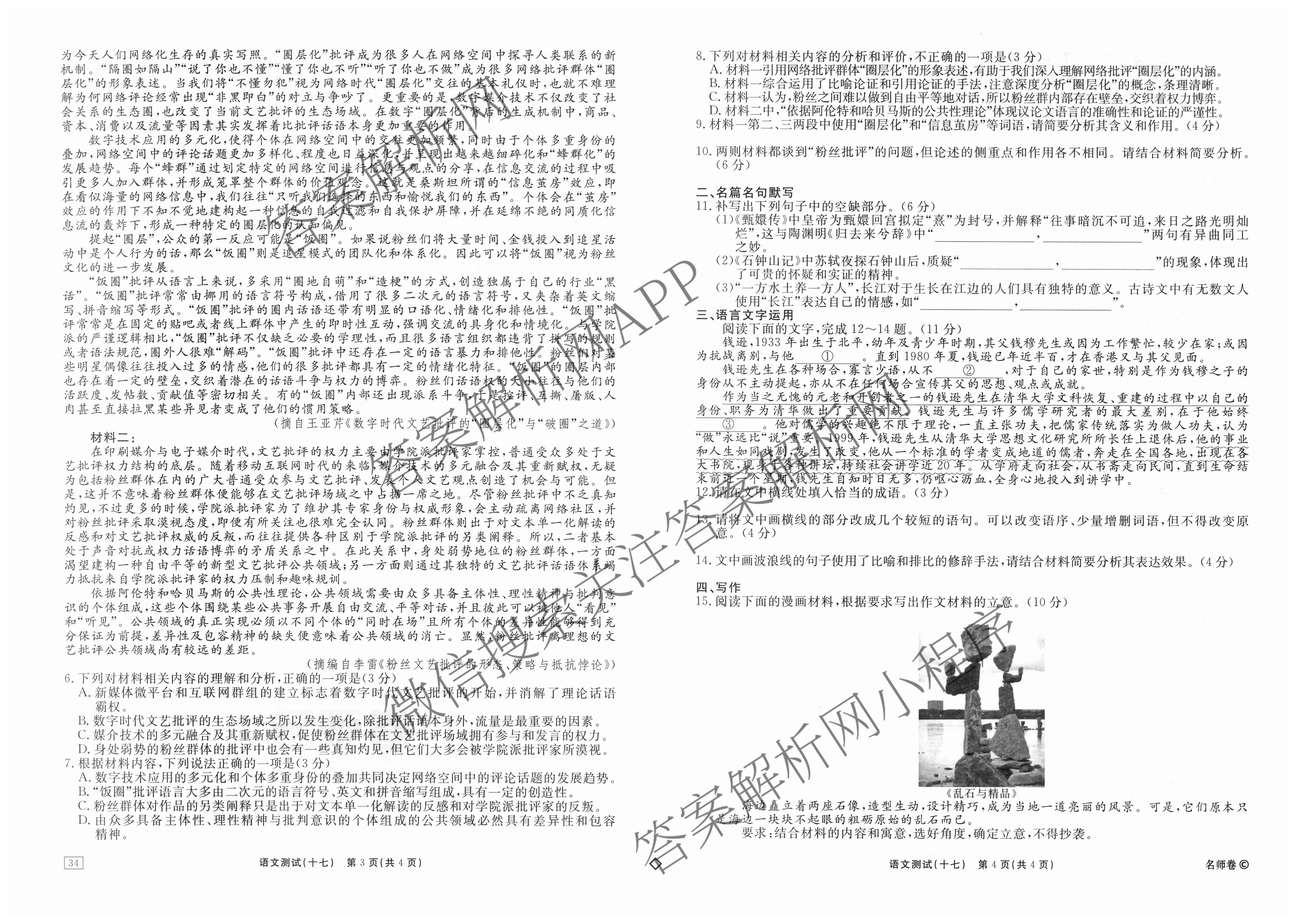 衡水名师卷2024-2025学年度高三一轮复习考点测试卷语文(40分钟空心菱形)(十七)17试题