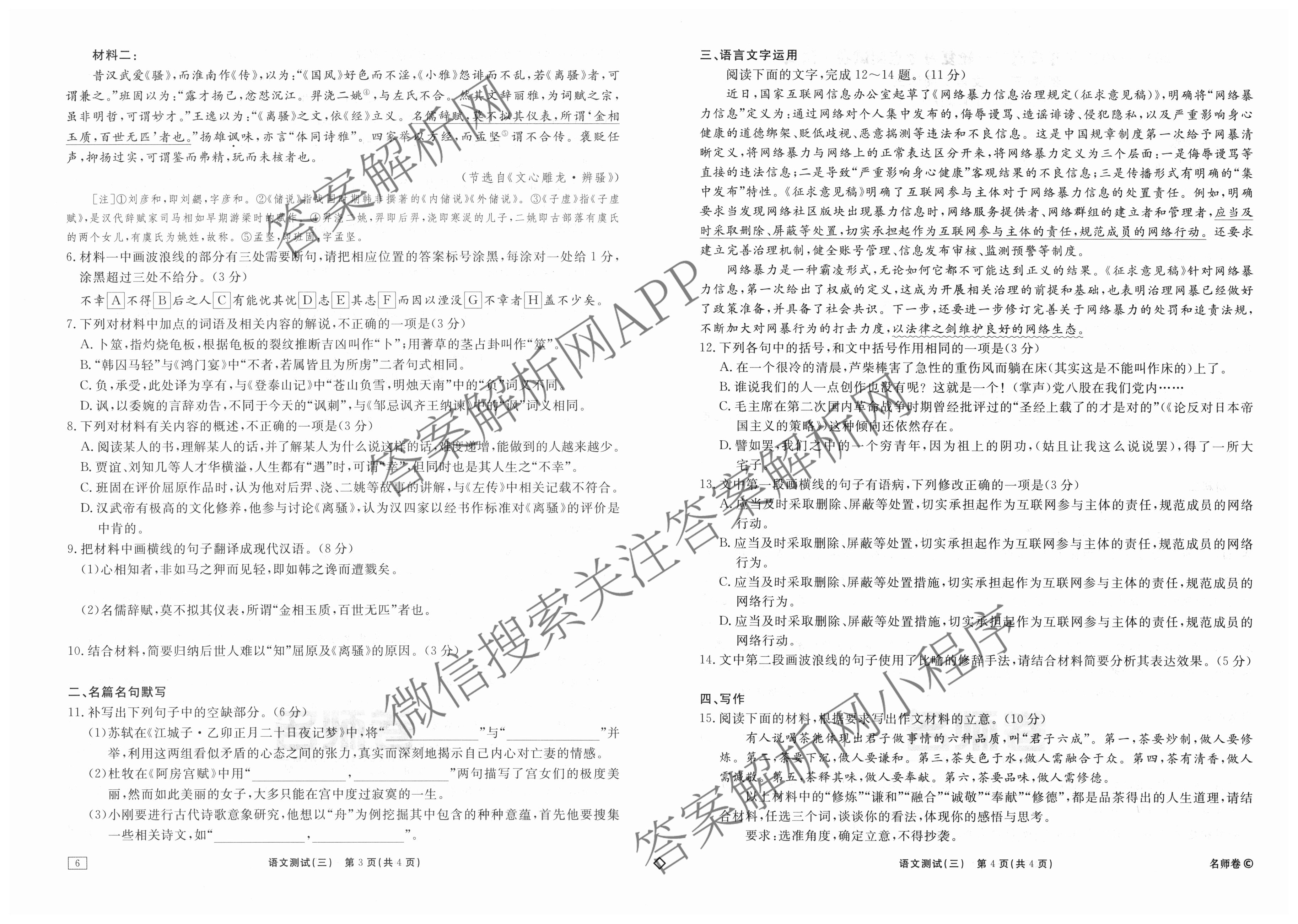 衡水名师卷·2024-2025学年度高三一轮复习考点测试卷·语文(40分钟·空心菱形)(三)3试题,目前分科卷答案网已经汇总了衡水名师卷·2024-2025学年度高三一轮复习考点测试卷·语文(40分钟·空心菱形)(三)3试题的各科答案和试卷,获取更多衡水名师卷答案解析,请在关注本站。