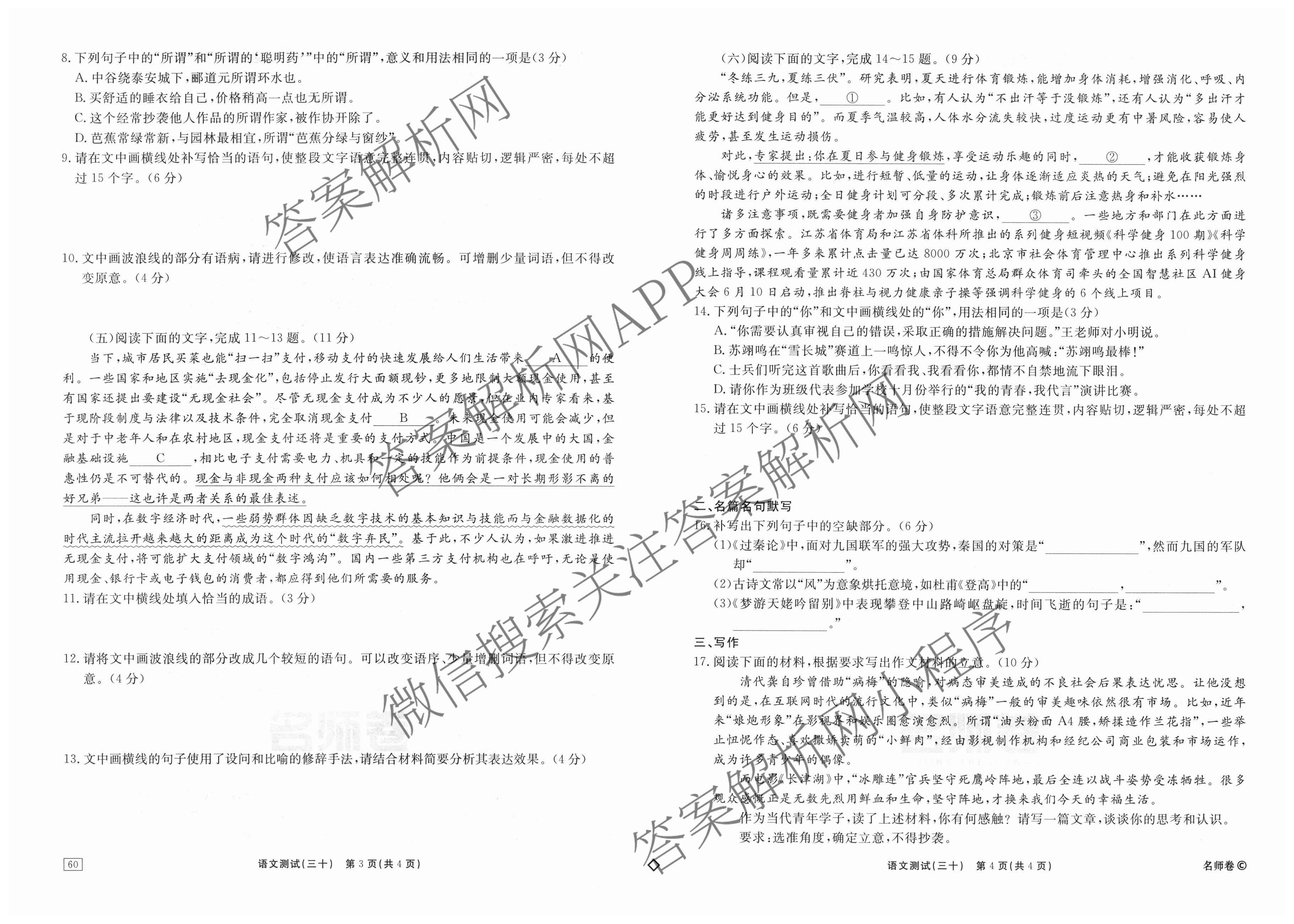 衡水名师卷·2024-2025学年度高三一轮复习考点测试卷·语文(40分钟·空心菱形)(三十)30试题,目前分科卷答案网已经汇总了衡水名师卷·2024-2025学年度高三一轮复习考点测试卷·语文(40分钟·空心菱形)(三十)30试题的各科答案和试卷,获取更多衡水名师卷答案解析,请在关注本站。