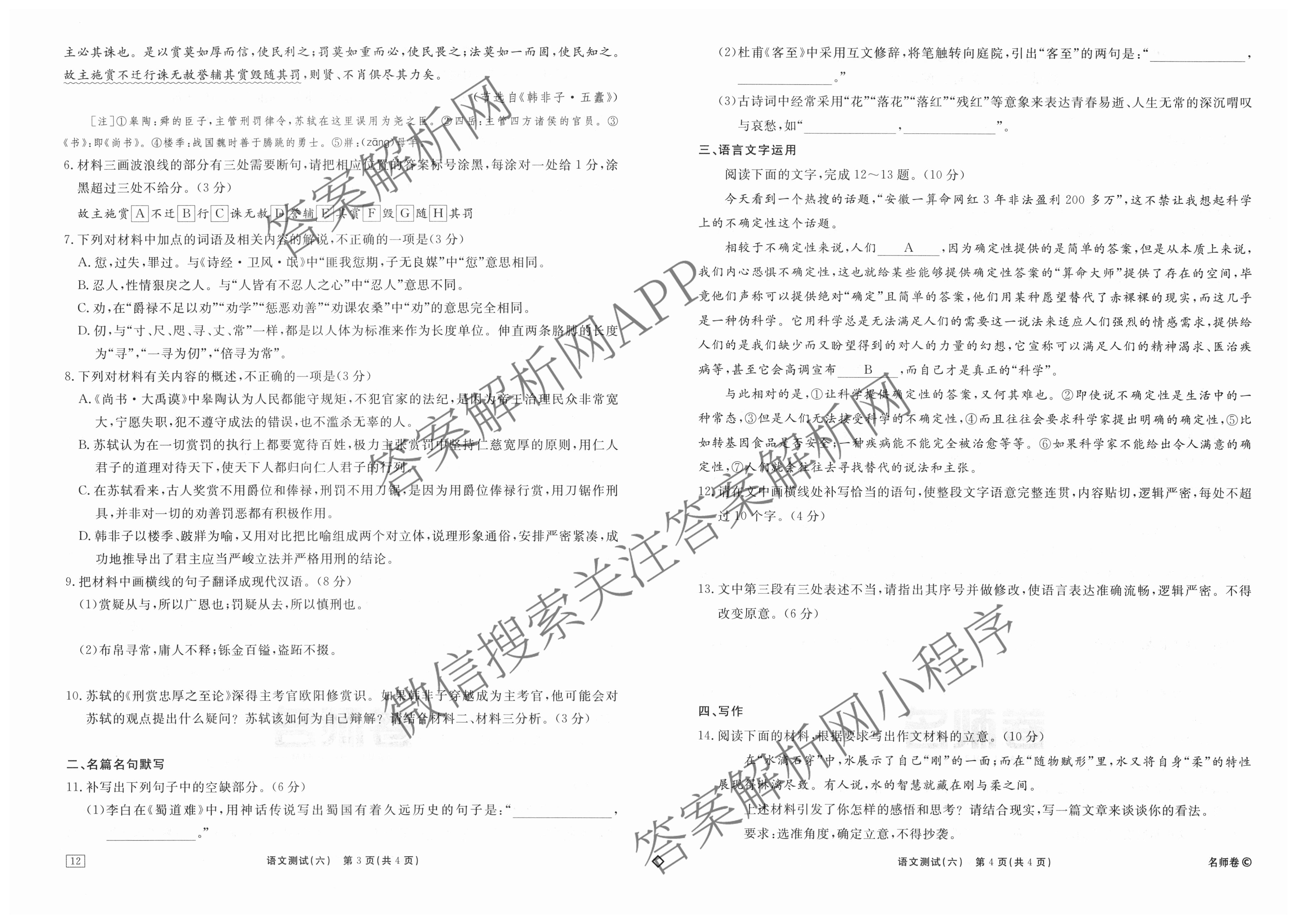 衡水名师卷·2024-2025学年度高三一轮复习考点测试卷·语文(40分钟·空心菱形)(六)6试题,目前分科卷答案网已经汇总了衡水名师卷·2024-2025学年度高三一轮复习考点测试卷·语文(40分钟·空心菱形)(六)6试题的各科答案和试卷,获取更多衡水名师卷答案解析,请在关注本站。
