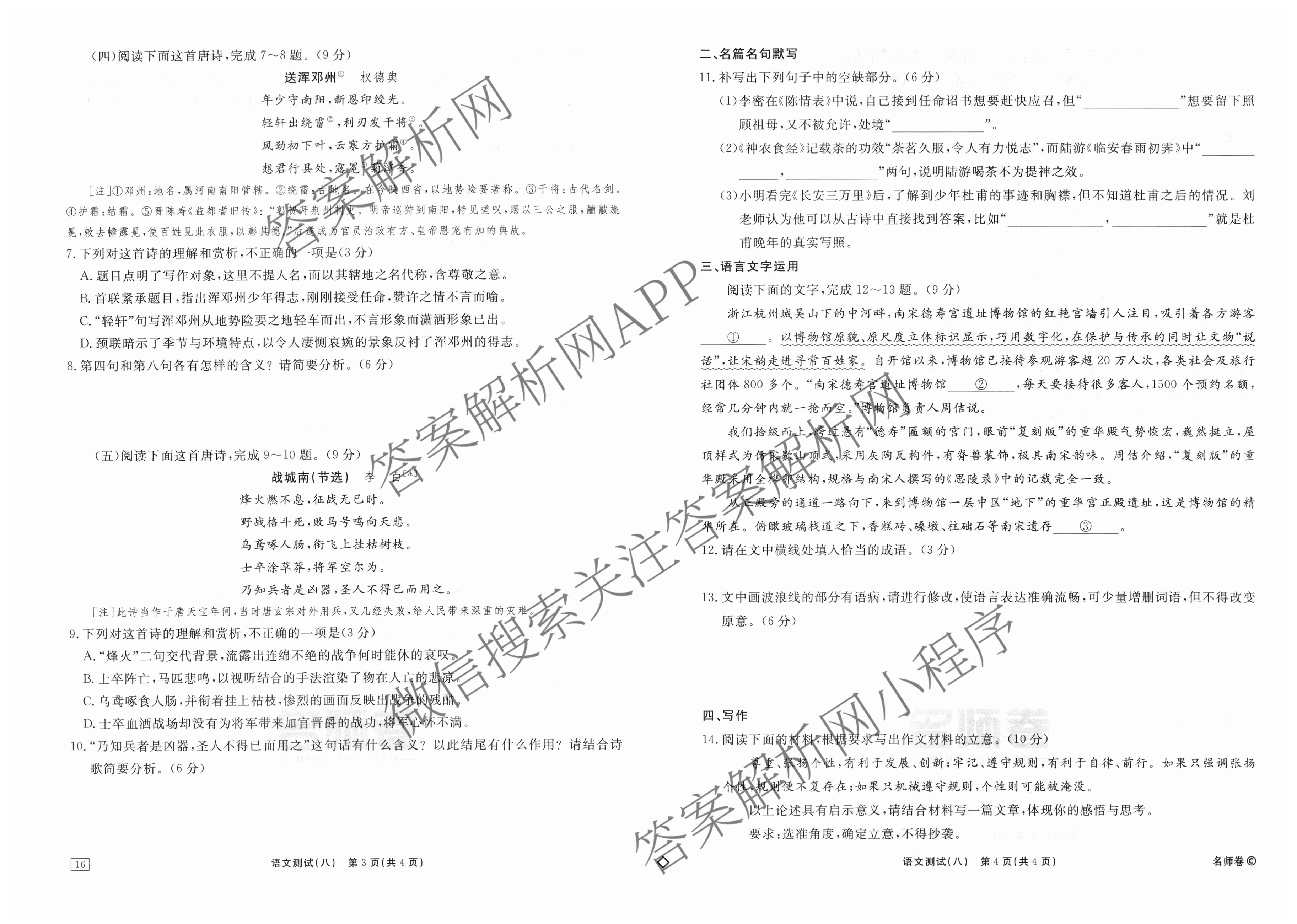 衡水名师卷·2024-2025学年度高三一轮复习考点测试卷·语文(40分钟·空心菱形)(八)8试题,目前分科卷答案网已经汇总了衡水名师卷·2024-2025学年度高三一轮复习考点测试卷·语文(40分钟·空心菱形)(八)8试题的各科答案和试卷,获取更多衡水名师卷答案解析,请在关注本站。