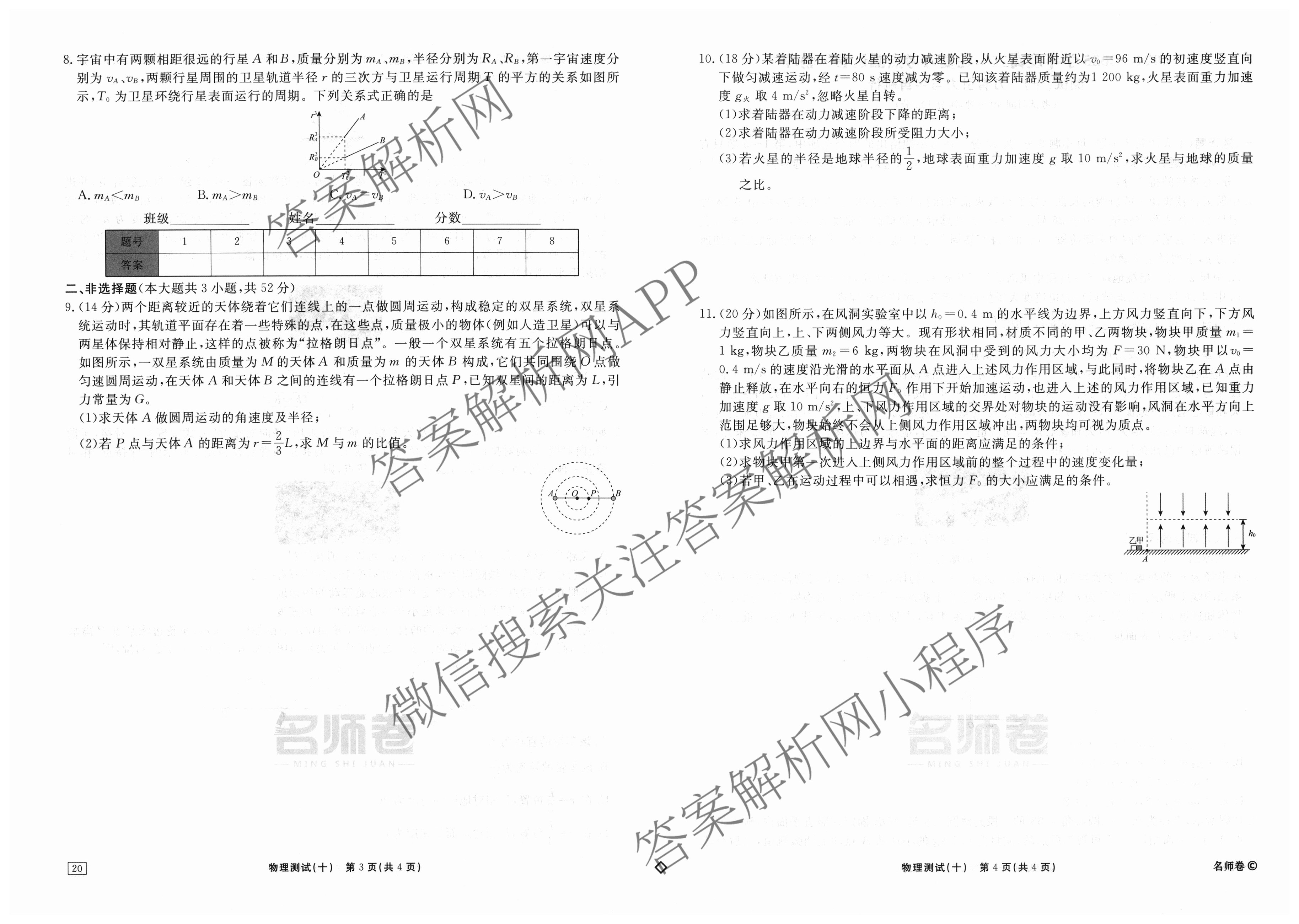 衡水名师卷2024-2025学年度高三一轮复习考点测试卷物理(40分钟空心菱形)(十)10试题