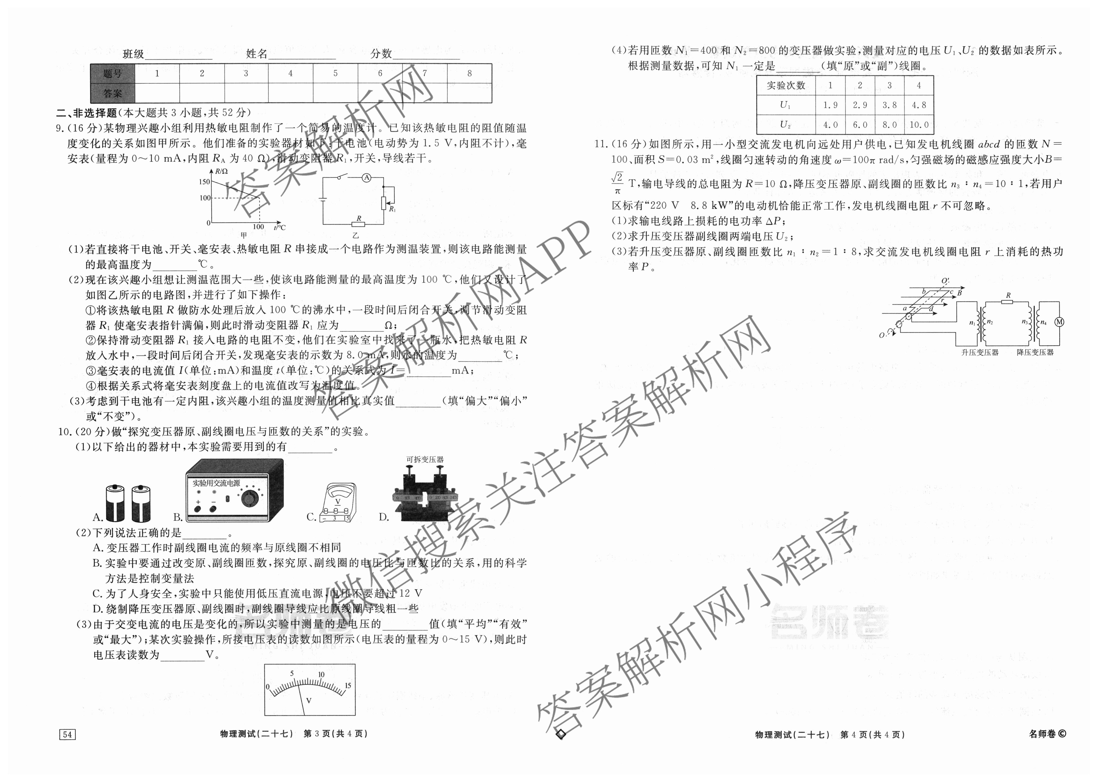 衡水名师卷·2024-2025学年度高三一轮复习考点测试卷·物理(40分钟·空心菱形)(二十七)27试题,目前分科卷答案网已经汇总了衡水名师卷·2024-2025学年度高三一轮复习考点测试卷·物理(40分钟·空心菱形)(二十七)27试题的各科答案和试卷,获取更多衡水名师卷答案解析,请在关注本站。