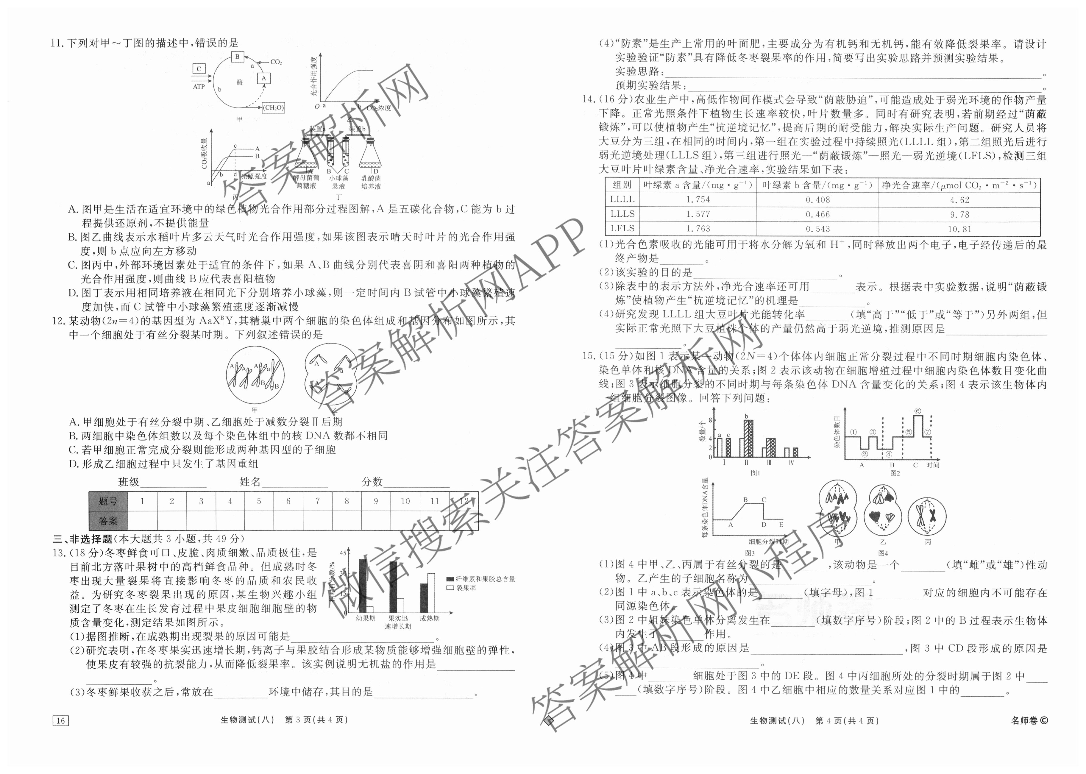衡水名师卷2024-2025学年度高三一轮复习考点测试卷生物(40分钟实心菱形)(八)8试题