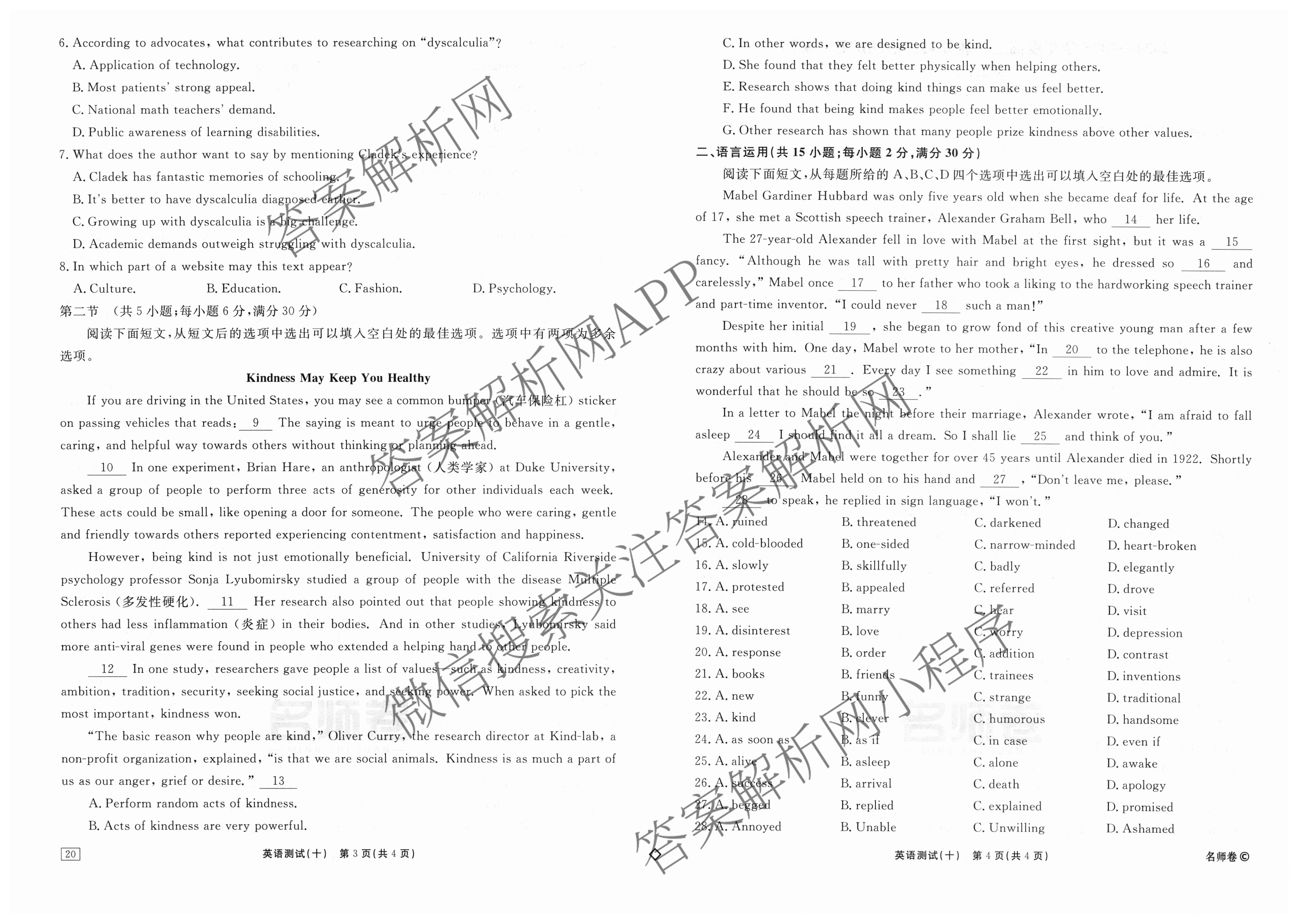 衡水名师卷2024-2025学年度高三一轮复习考点测试卷英语(40分钟空心菱形)(十)10试题