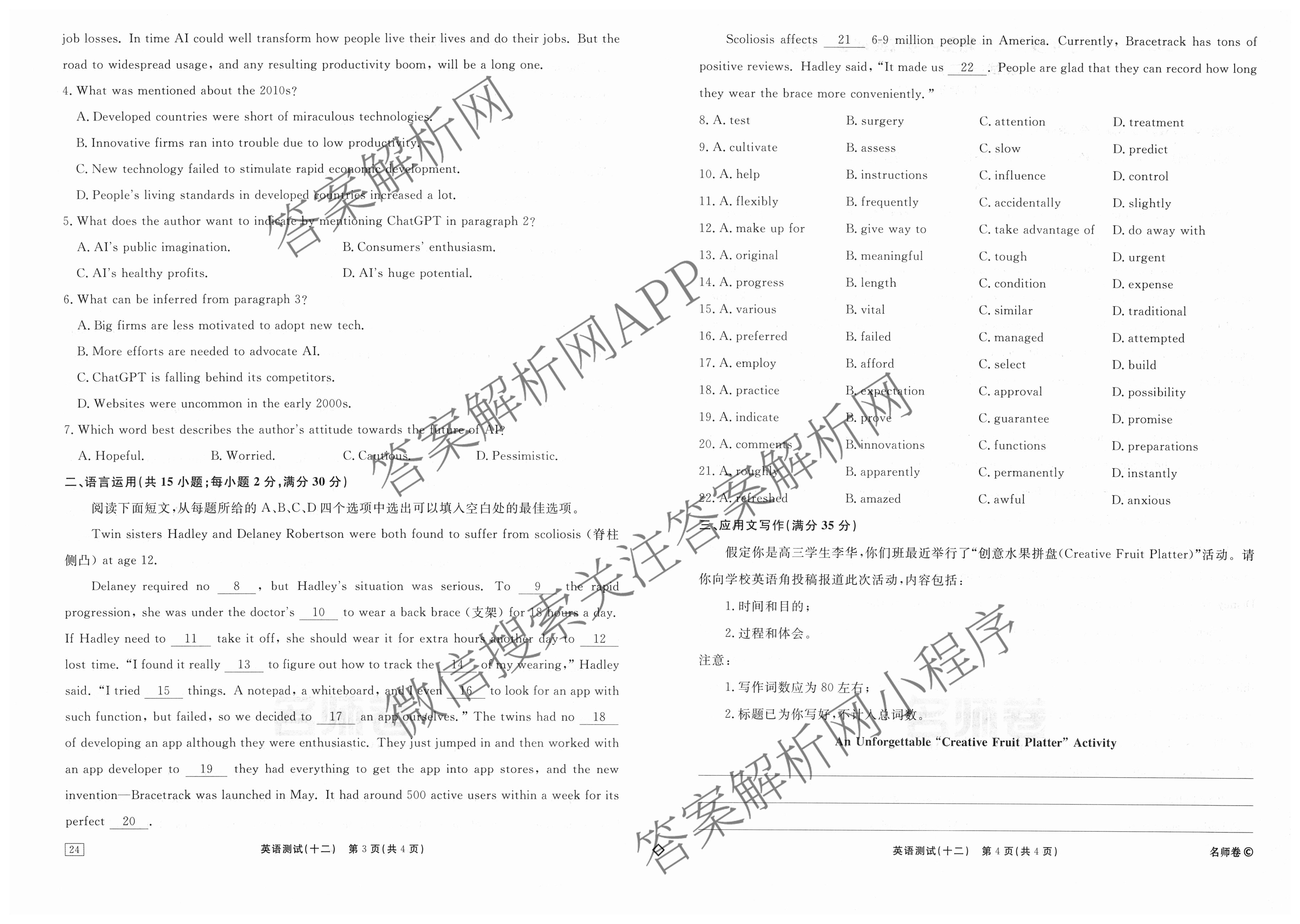 衡水名师卷·2024-2025学年度高三一轮复习考点测试卷·英语(40分钟·空心菱形)(十二)12试题,目前分科卷答案网已经汇总了衡水名师卷·2024-2025学年度高三一轮复习考点测试卷·英语(40分钟·空心菱形)(十二)12试题的各科答案和试卷,获取更多衡水名师卷答案解析,请在关注本站。