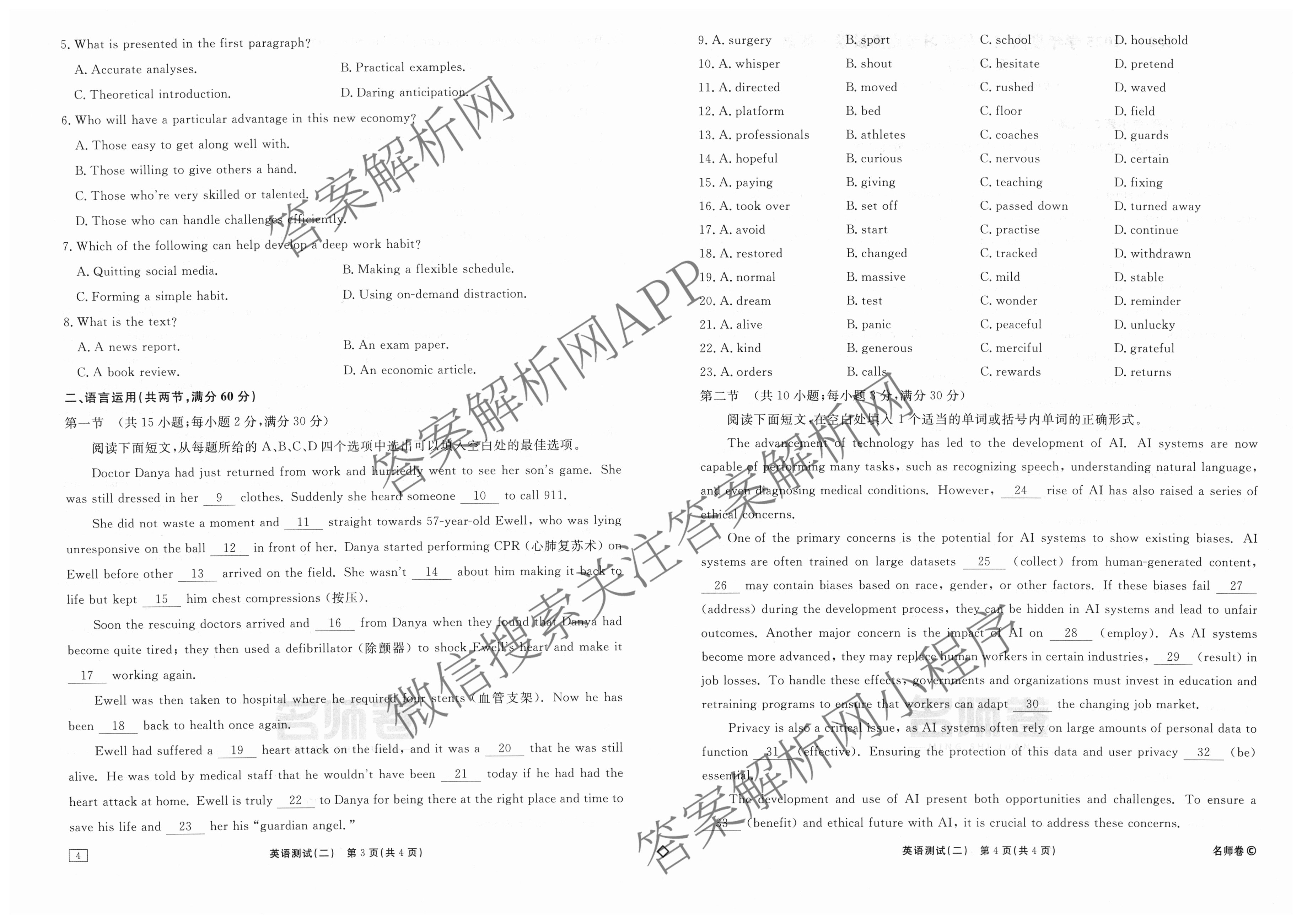 衡水名师卷2024-2025学年度高三一轮复习考点测试卷英语(40分钟空心菱形)(二)2试题