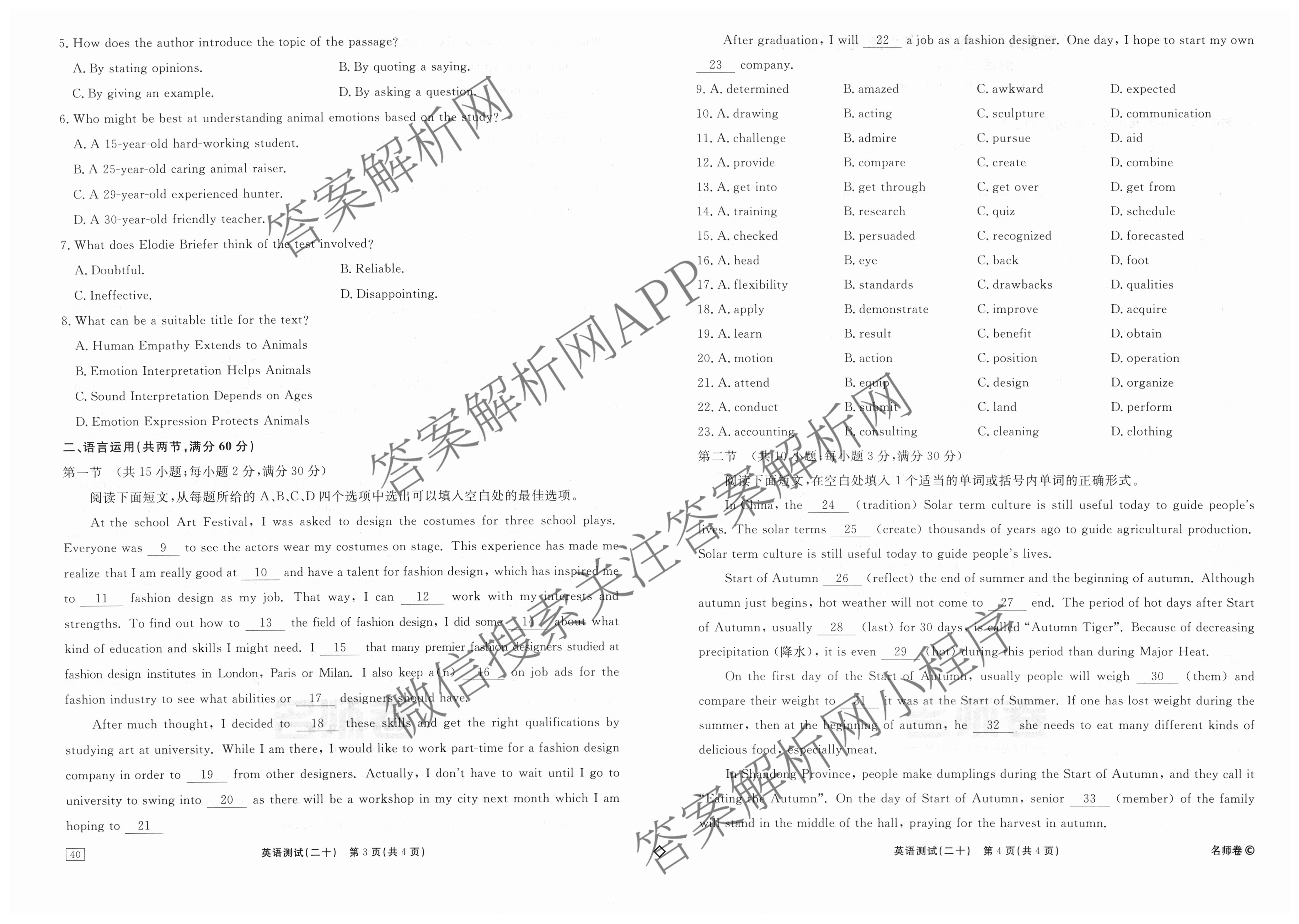 衡水名师卷2024-2025学年度高三一轮复习考点测试卷英语(40分钟空心菱形)(二十)20试题