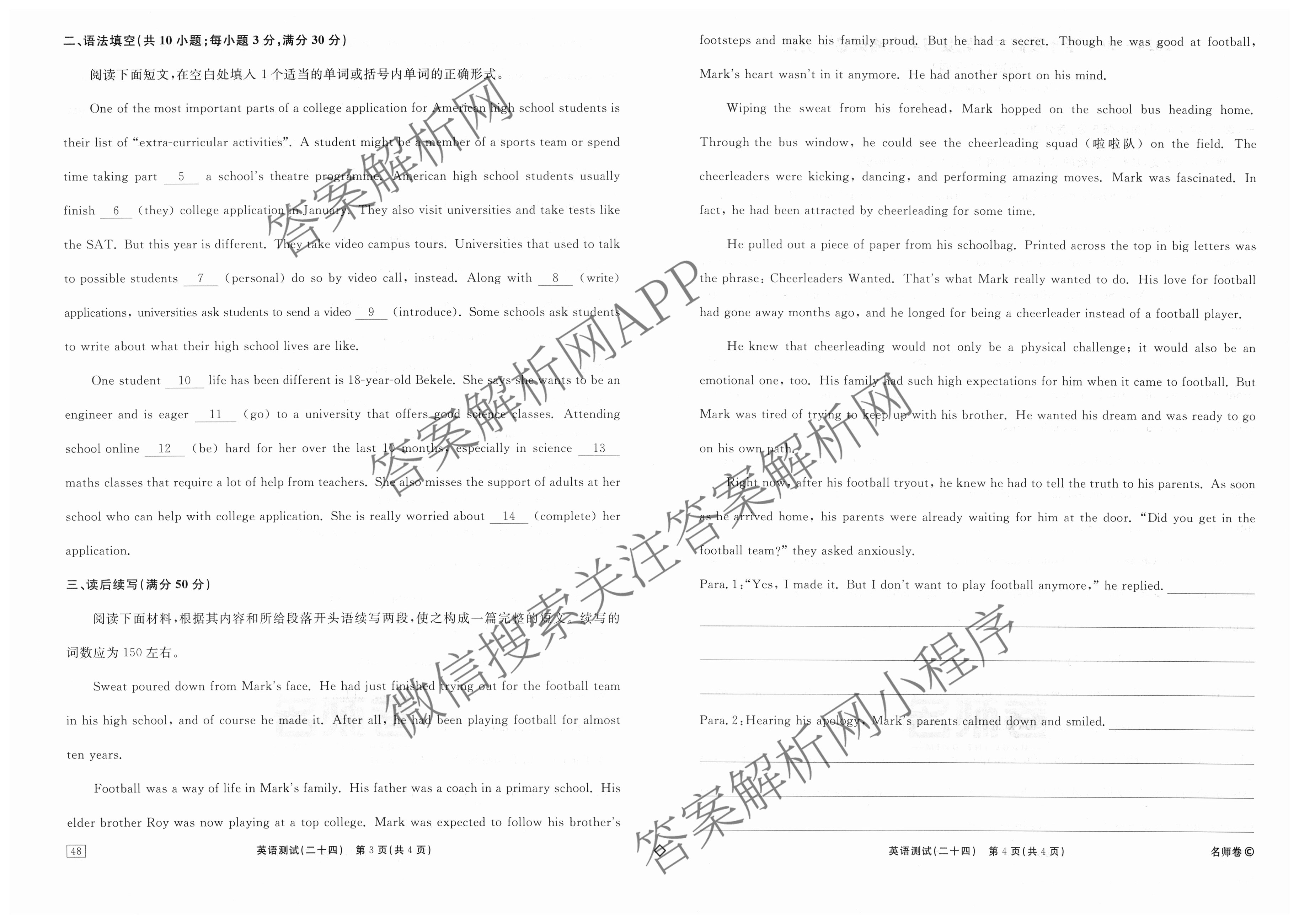 衡水名师卷2024-2025学年度高三一轮复习考点测试卷英语(40分钟空心菱形)(二十四)24试题