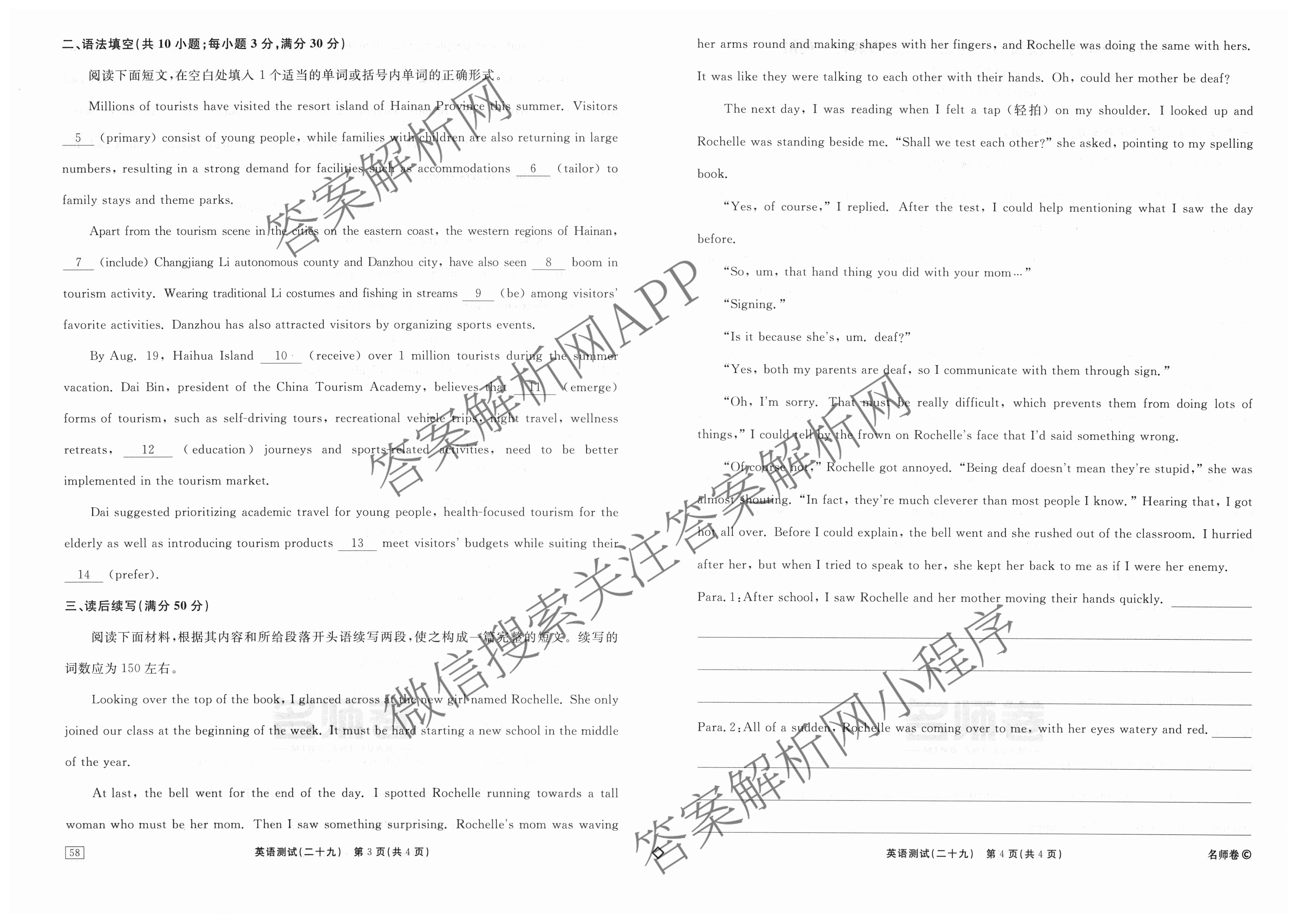 衡水名师卷2024-2025学年度高三一轮复习考点测试卷英语(40分钟空心菱形)(二十九)29试题