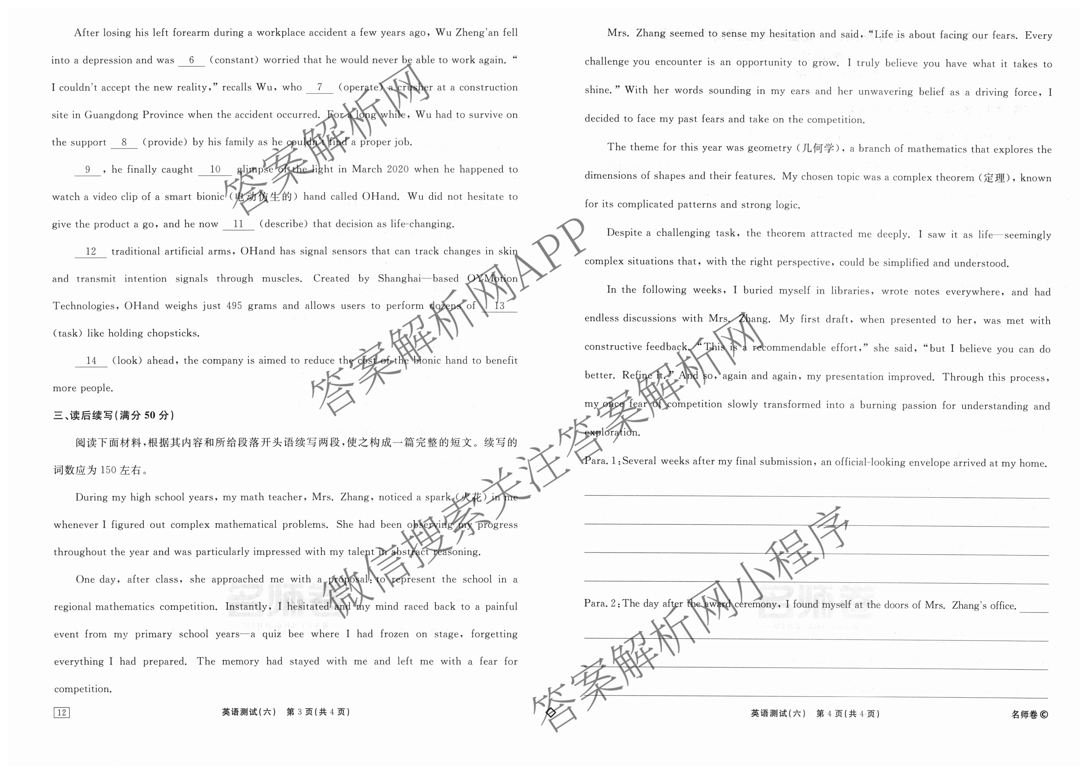 衡水名师卷2024-2025学年度高三一轮复习考点测试卷英语(40分钟空心菱形)(六)6试题