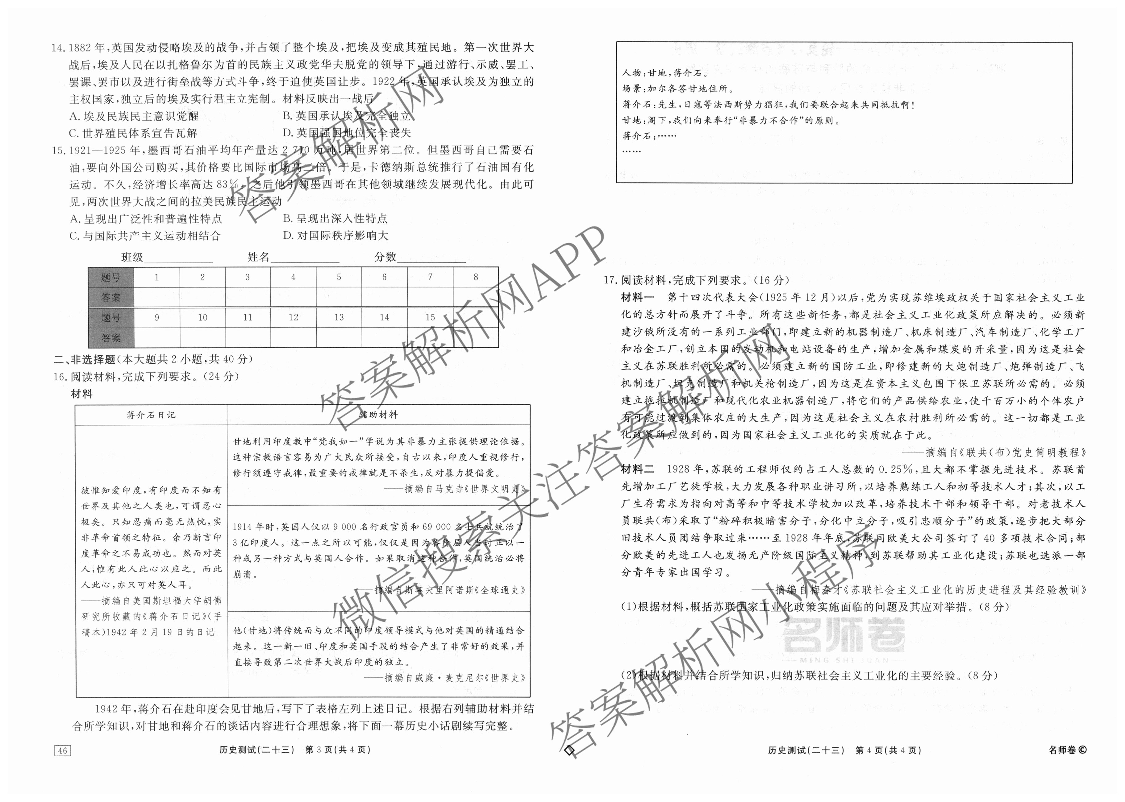 衡水名师卷·2024-2025学年度高三一轮复习考点测试卷·历史(40分钟·空心菱形)(二十三)23试题,目前分科卷答案网已经汇总了衡水名师卷·2024-2025学年度高三一轮复习考点测试卷·历史(40分钟·空心菱形)(二十三)23试题的各科答案和试卷,获取更多衡水名师卷答案解析,请在关注本站。