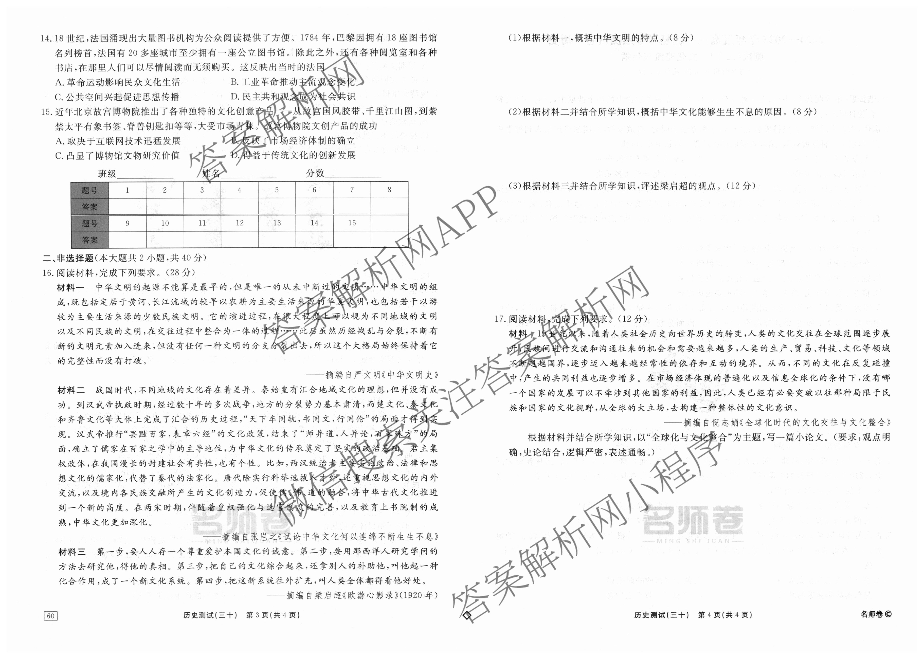 衡水名师卷·2024-2025学年度高三一轮复习考点测试卷·历史(40分钟·空心菱形)(三十)30试题,目前分科卷答案网已经汇总了衡水名师卷·2024-2025学年度高三一轮复习考点测试卷·历史(40分钟·空心菱形)(三十)30试题的各科答案和试卷,获取更多衡水名师卷答案解析,请在关注本站。