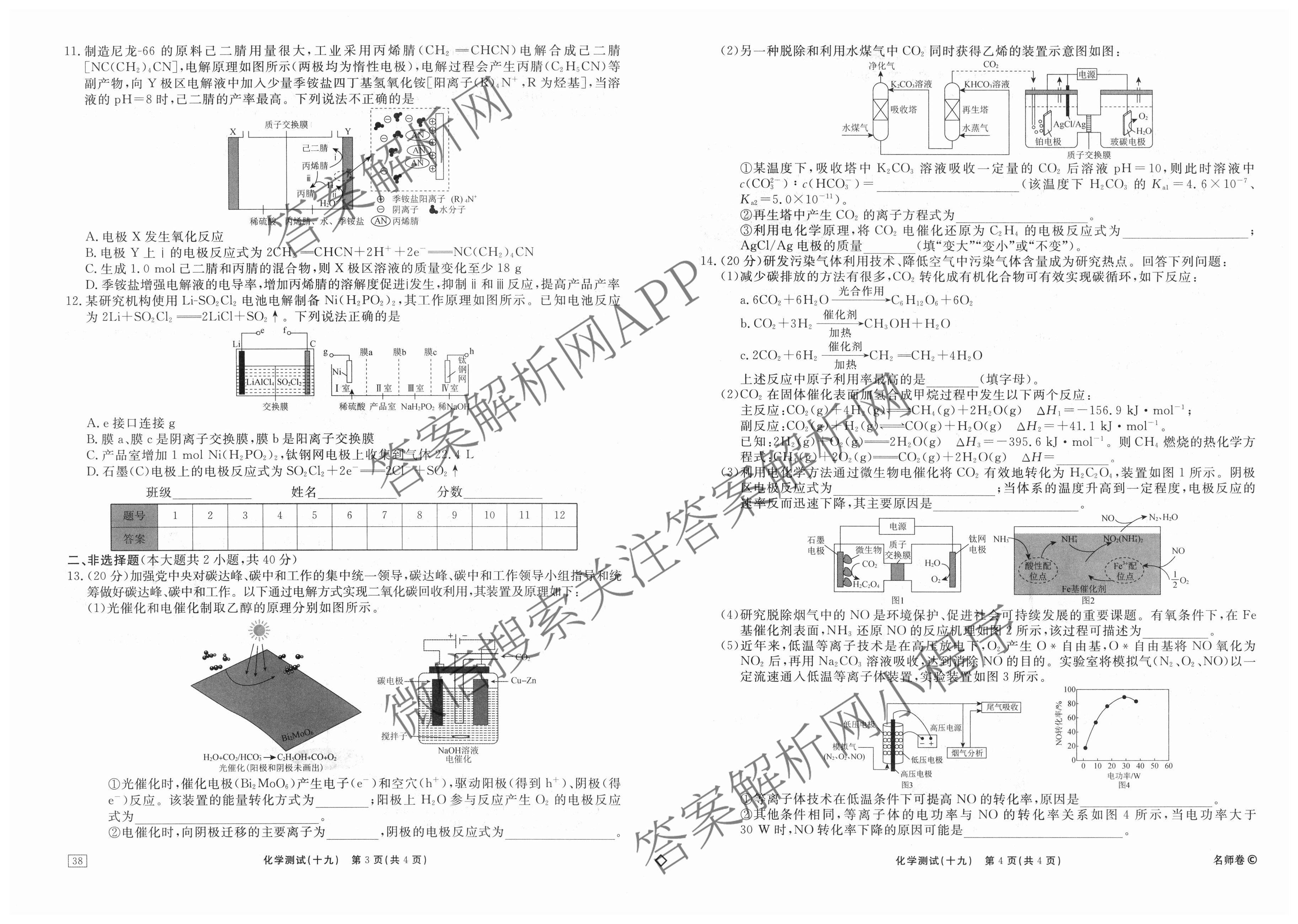衡水名师卷2024-2025学年度高三一轮复习考点测试卷化学(40分钟空心菱形)(十九)19试题