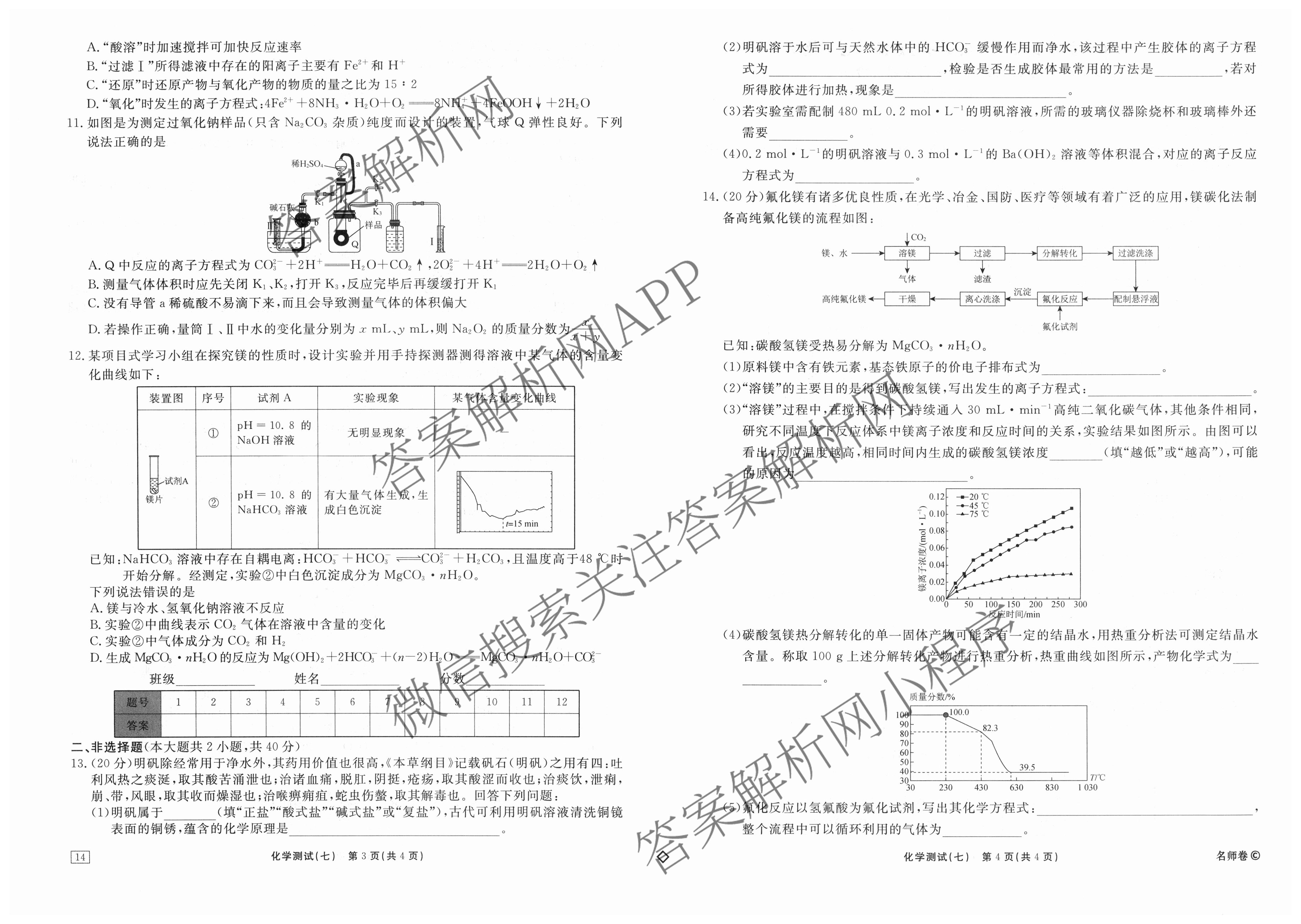 衡水名师卷2024-2025学年度高三一轮复习考点测试卷化学(40分钟空心菱形)(七)7试题