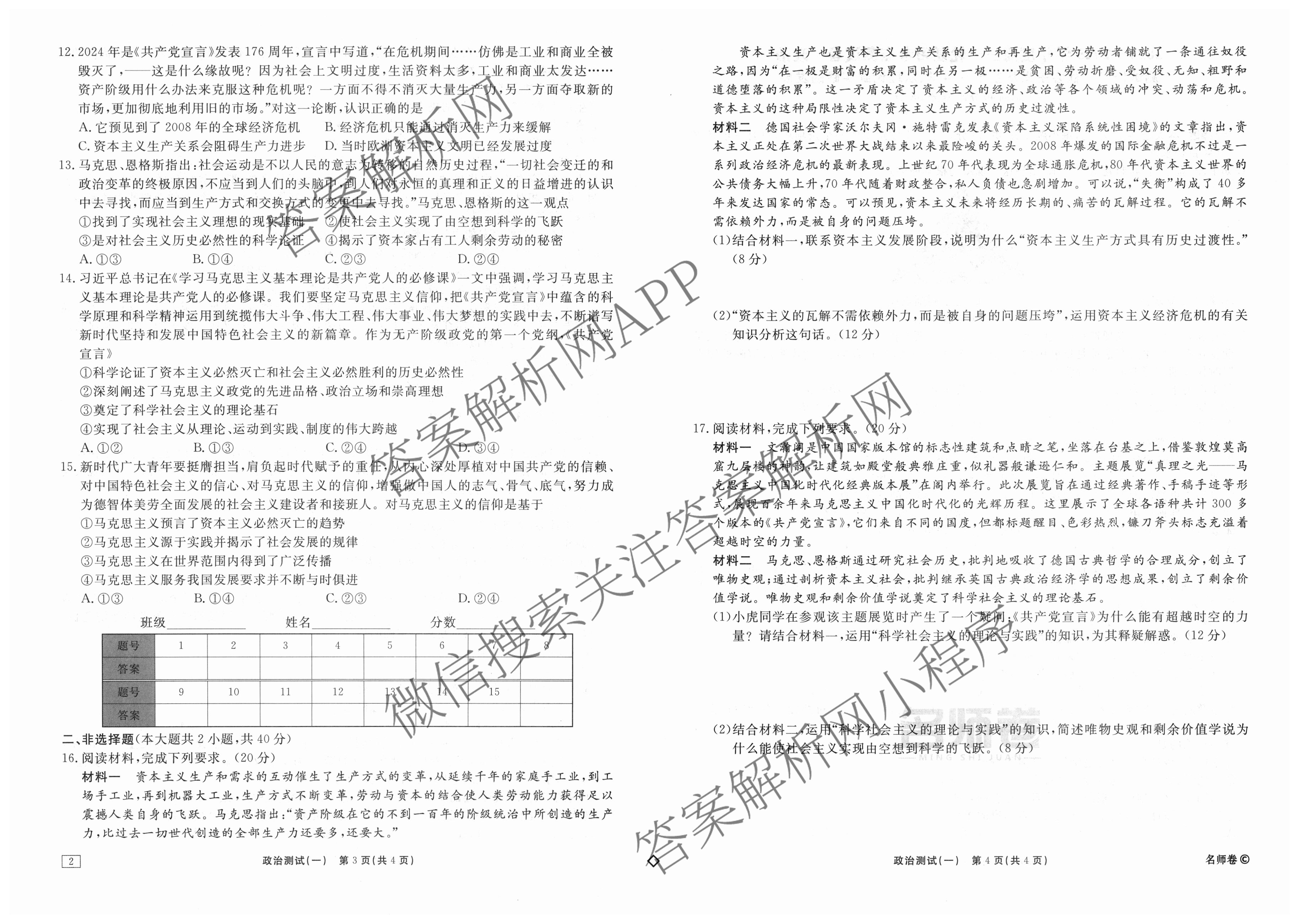 衡水名师卷·2024-2025学年度高三一轮复习考点测试卷·政治(40分钟·空心菱形)(一)1试题,目前分科卷答案网已经汇总了衡水名师卷·2024-2025学年度高三一轮复习考点测试卷·政治(40分钟·空心菱形)(一)1试题的各科答案和试卷,获取更多衡水名师卷答案解析,请在关注本站。