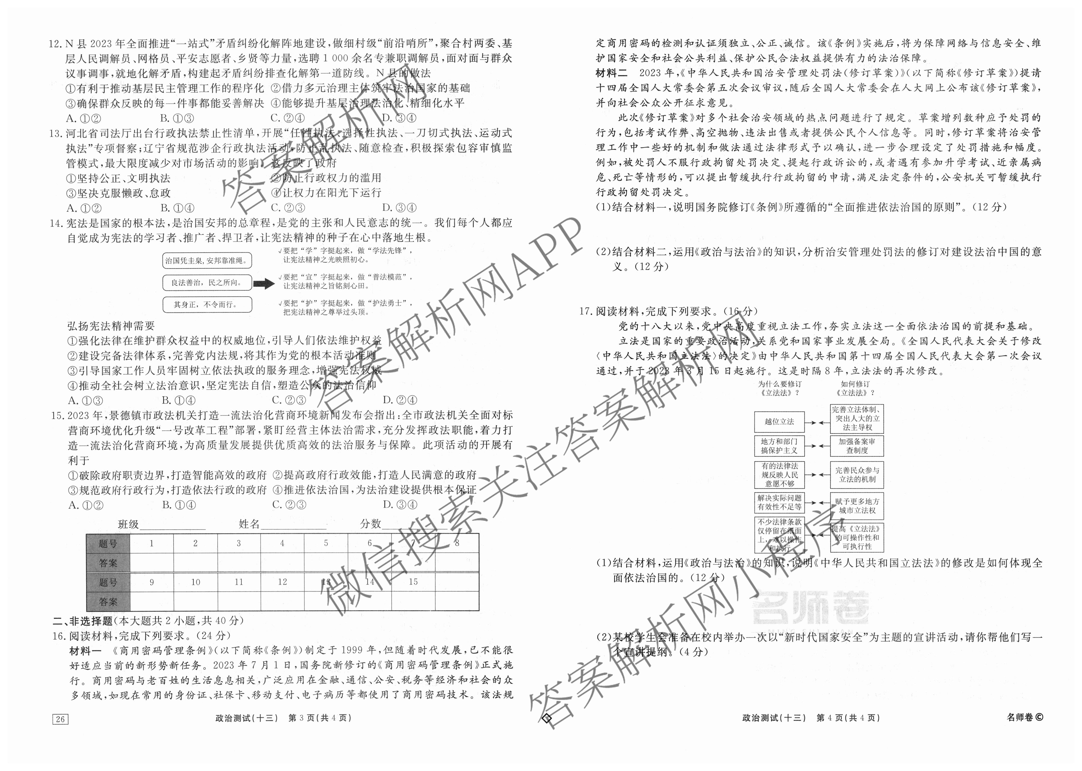 衡水名师卷·2024-2025学年度高三一轮复习考点测试卷·政治(40分钟·空心菱形)(十二)12试题,目前分科卷答案网已经汇总了衡水名师卷·2024-2025学年度高三一轮复习考点测试卷·政治(40分钟·空心菱形)(十二)12试题的各科答案和试卷,获取更多衡水名师卷答案解析,请在关注本站。