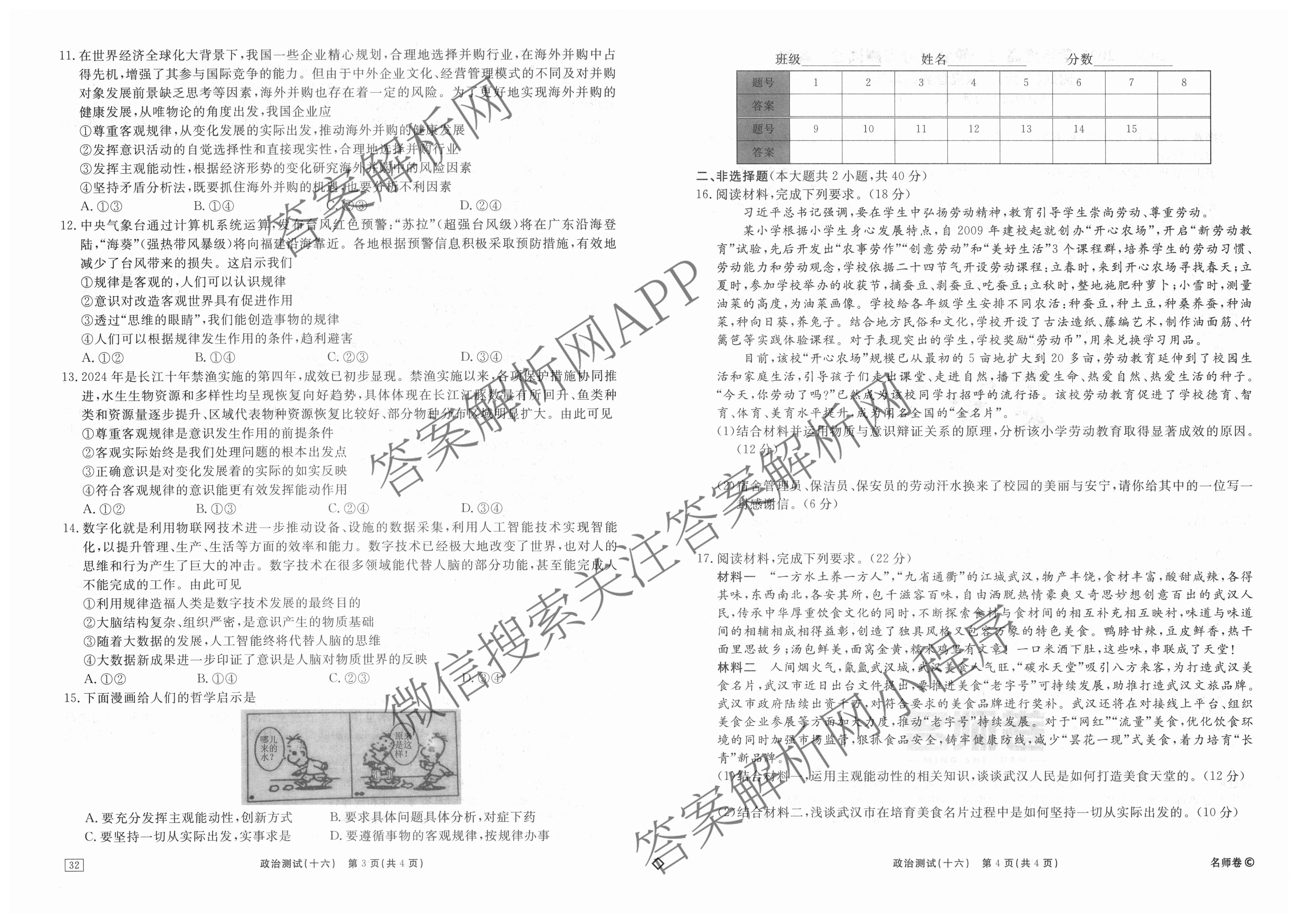 衡水名师卷2024-2025学年度高三一轮复习考点测试卷政治(40分钟空心菱形)(十六)16试题