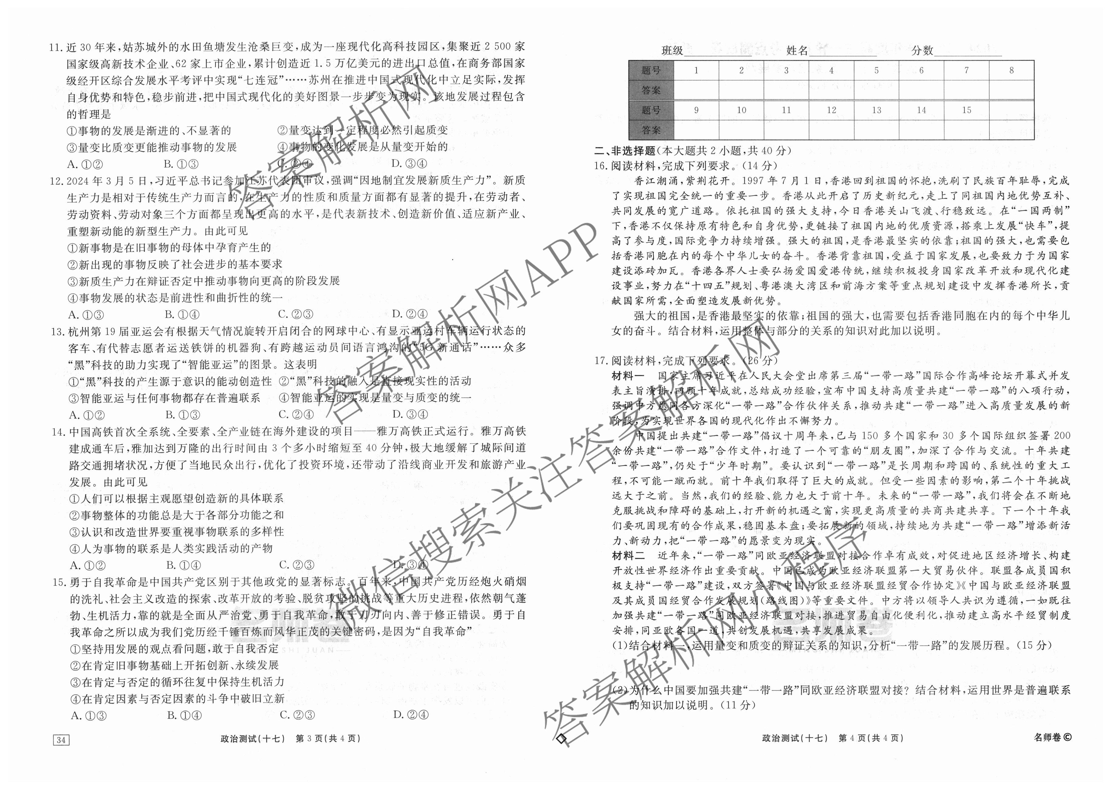 衡水名师卷2024-2025学年度高三一轮复习考点测试卷政治(40分钟空心菱形)(十七)17试题