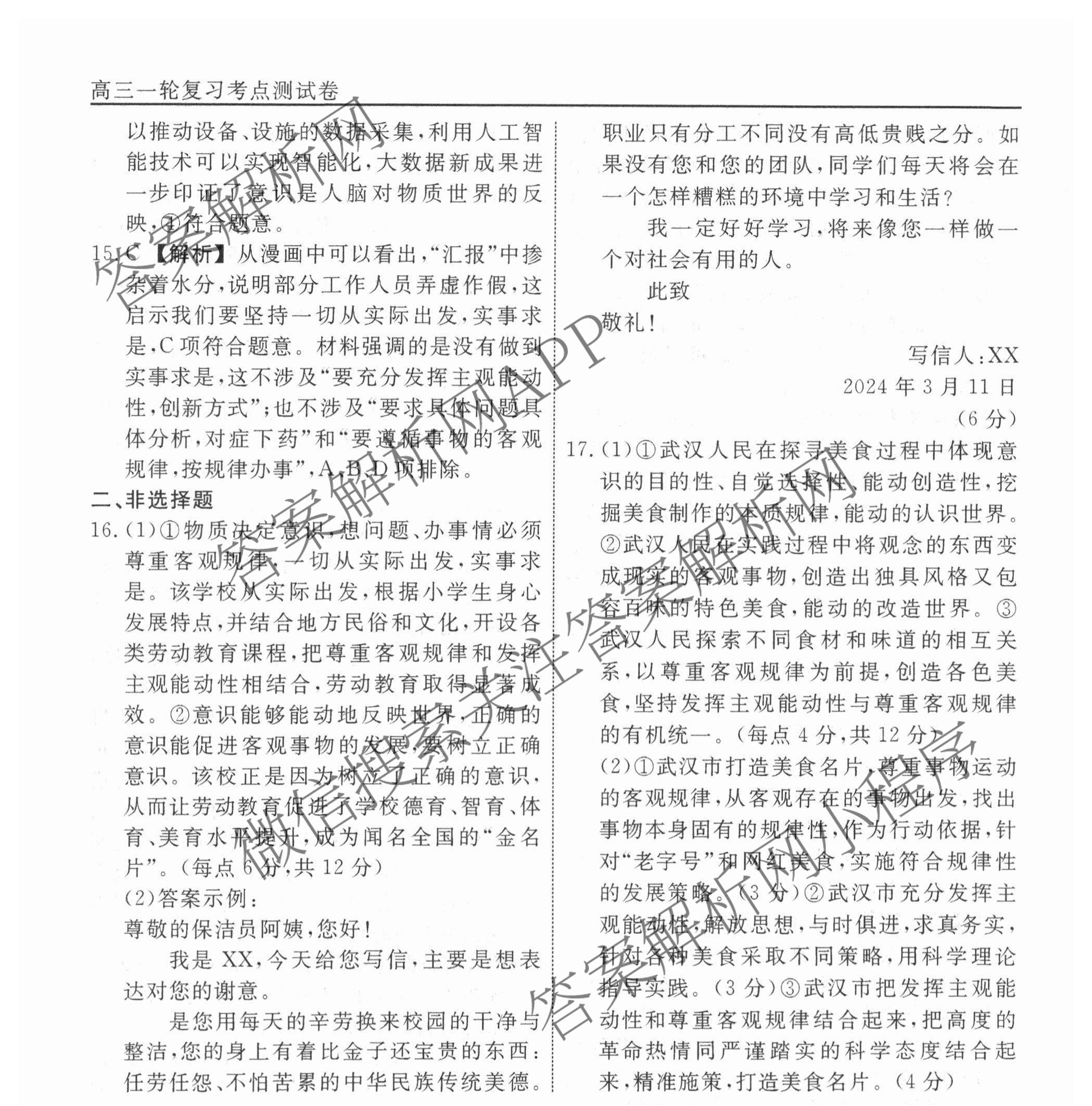 衡水名师卷2024-2025学年度高三一轮复习考点测试卷政治(40分钟空心菱形)(十六)16答案